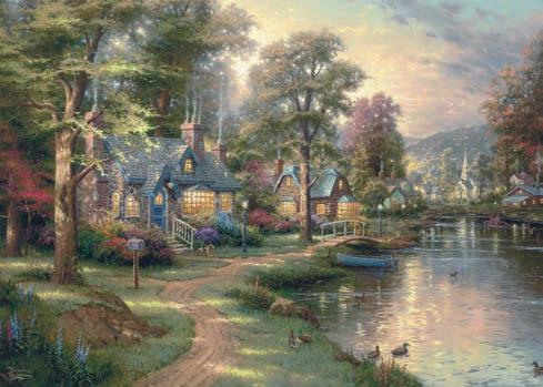 Thomas Kinkade bezeichnete sich selbst als „Maler des Lichts“ und nutzte dieses Stilmittel in eindrucksvoller Weise, um seine Gemälde stimmungsvoll zu präsentieren: Sonnige Lichtungen, lichtdurchflutete Baumgruppen oder winterliche Szenen mit warmem Kerzen- und Feuerschein laden dazu ein, den Blick schweifen zu lassen. Thomas Kinkade Studios Ziel ist es, bei den Betrachtern Hoffnung und Freude zu erwecken sowie einen Blick gezielt auf die schönen Momente im Leben zu lenken. Die Stimmung der Motive zieht einen sofort in seinen Bann. Das liegt vor allem an den mit viel Liebe zum Detail komponierten Szenen. Schaut man sich die Motive genauer an, gibt es immer neue Elemente und Feinheiten zu entdecken. Durch sie wirken diese Kunstwerke auf eine einmalige Art lebendig und frisch.