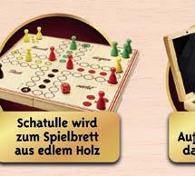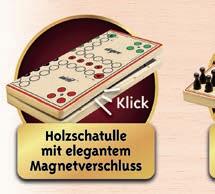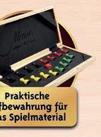 Holzschatulle mit großem Spielmaterial und elegantem Magnetverschluss. Im praktischen Inlay aus Schaumgummi kann das Spielmaterial schön verstaut werden.
