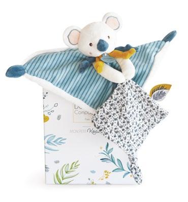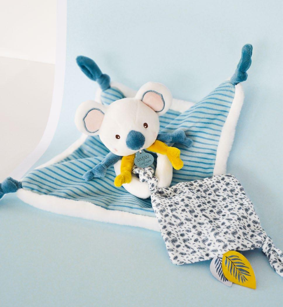 Bienvenue dans un univers « jungle » avec YOCA LE KOALA ! La frimousse d’un Koala trop mignon, de grandes feuilles et un imprimé 100% végétal qui ramène un peu de nature et d’évasion dans la chambre de bébé ! Du lange 100% coton imprimé et de la peluche doudou EXTRA DOUCE pour un confort optimal !
