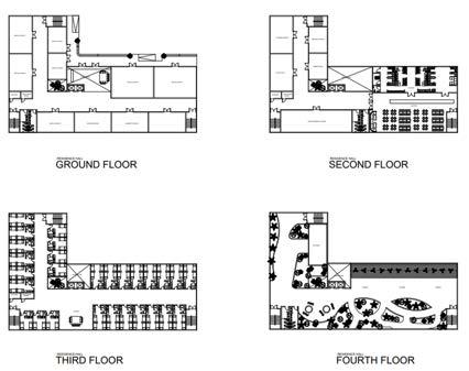 Different blocks of building complex are placed according to the site lines. all the peripheral buildinglinesareparalleltothesitelines.