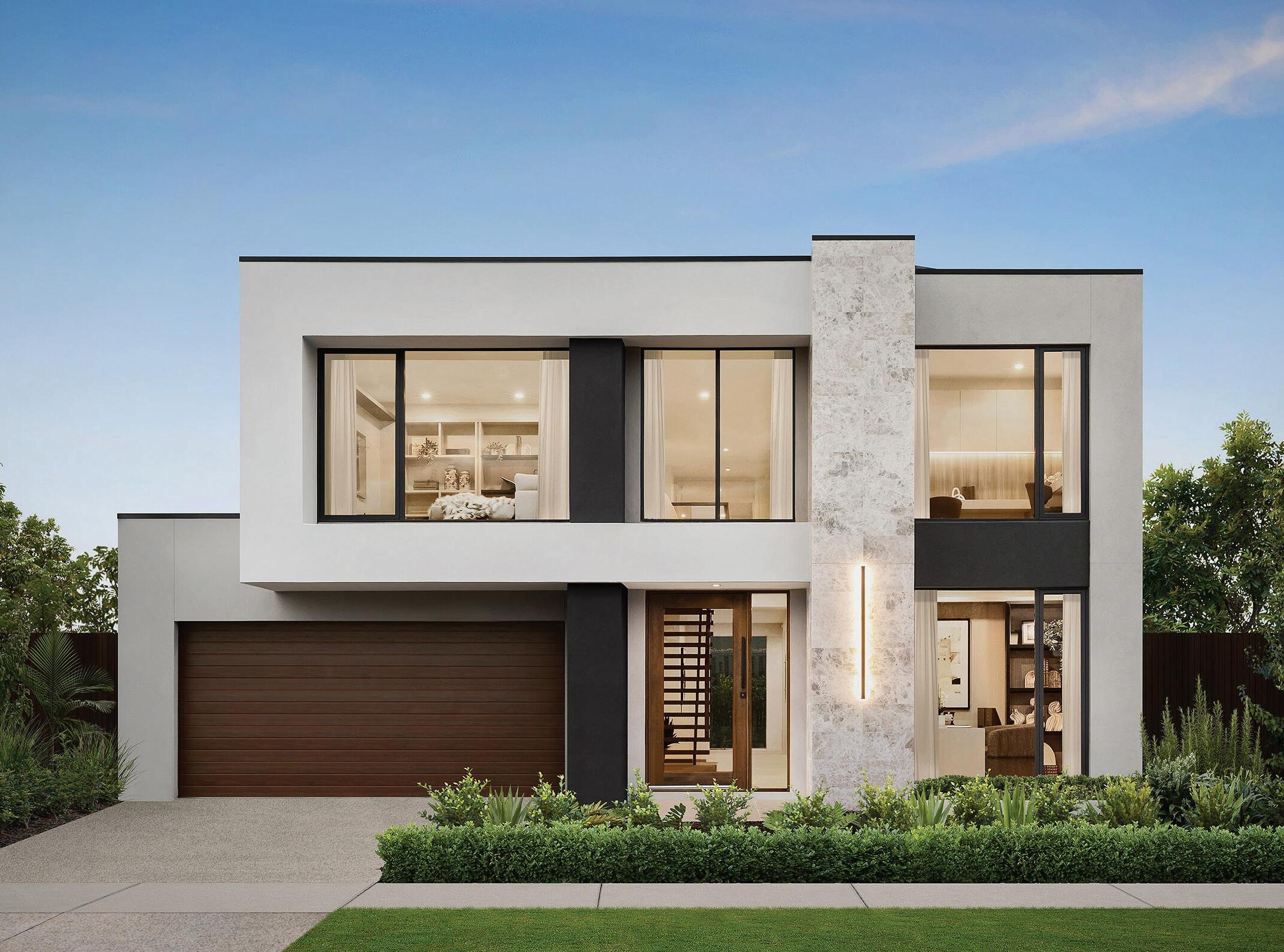 • Front entry door(s): choice of Corinthian Madison PMAD101, PSLM202, PSLM204, Blonde Oak AWO21 clear fully glazed door (920mm/1020 wide x 2340mm high – house design and facade specific)