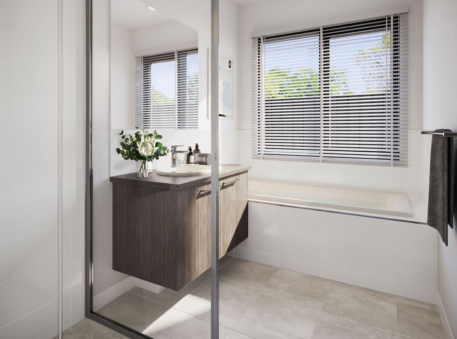 Relax in the comfort of your very own at-home retreat; the Botanical scheme offers a tranquil light coloured bathroom palette. Upgrade to a Caesarstone® vanity for a streamlined style throughout your new home.
