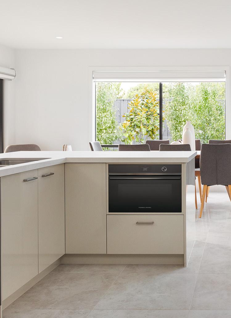 Note: Bottom panel to overhead cupboards to remain standard laminate. Provide Laminex ‘Silk’ laminate to Kitchen base cupboards instead of standard laminate finish, refer to colour document for selection. Provide contrasting standard laminate colour to Kitchen and Laundry overhead cupboards.