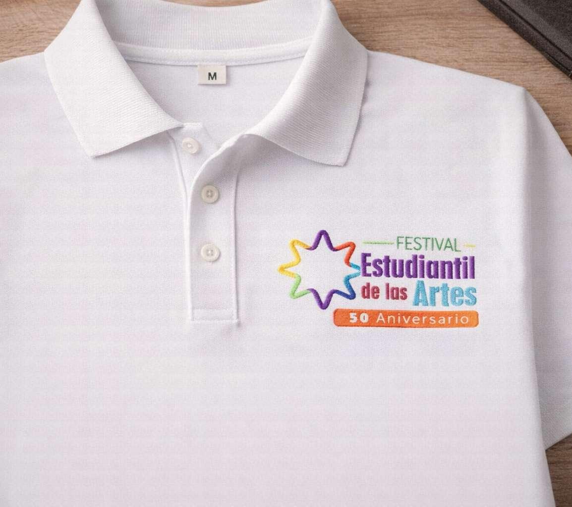 En cuanto a la composición tipográfica, se otorga mayor protagonismo a la palabra “Estudiantil”, con el fin de colocar al estudiante en el centro del mensaje. Este énfasis reafirma que el festival existe por y para ellos, reconociendo su papel como protagonistas del proceso artístico. La palabra “Artes” complementa el concepto, mientras que “Festival” funciona como marco institucional que contextualiza la actividad. El elemento “50 Aniversario”, dispuesto como un sello, resalta la trayectoria histórica del evento y su consolidación como un espacio significativo dentro del sistema educativo.