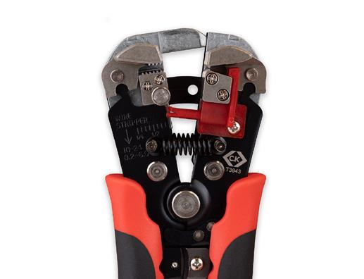 Pattress screw shear for damage free cutting of 3.5mm pattress screws. Wire stripping notches for effortless & damage free stripping of 1.5 & 2.5mm² wire.