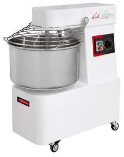 Impastatrici planetarie da banco da 7, 10 e 20 litri e da pavimento da 30 lt., con motori ventilati da 450, 1100 e 1500 W (escluso mod. PL7ECO che ha il motore CC) alimentati a 230 Volt. Cambio meccanico a 3 velocità mod.lli PL10ECO, PL20ECO e PL30ECO, variatore di velocità mod. PL7ECO (quest’ultimo modello è indicato per impasti morbidi e per impasti di media consistenza, es. pane e pizza, si consiglia max 1 Kg. di farina, non è adatto per impasti duri, es. taralli, pasta all’uovo). Sistema di riduzione tramite ingranaggi in metallo. Struttura realizzata in fusione di alluminio colore grigio mod. BL7ECO, in fusione di ghisa colore grigio mod.lli PL10ECO e PL20ECO, in carpenteria smaltata colore grigio mod. PL30ECO. Vasca in Acciaio Inox AISI 304. Fornite di 3 utensili: Frusta in fusione di alluminio e fili in acciaio, spatola e gancio in fusione di alluminio. Dispositivo di sicurezza sul sollevamento della vasca e sulla griglia. Pulsante MARCIA/ARRESTO. MARCHIO CE