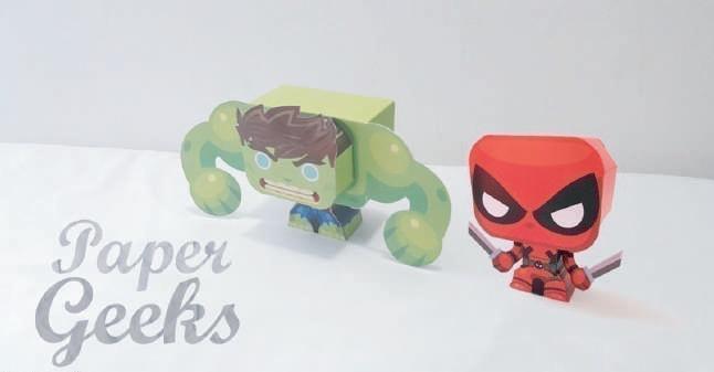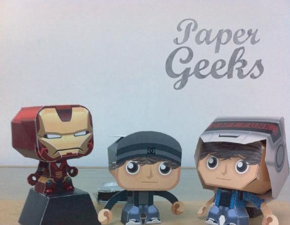 Diseño de figuras armables coleccionables (paper toys) personalizables, y su respectivo logotipo bajo la marca Paper Geeks.