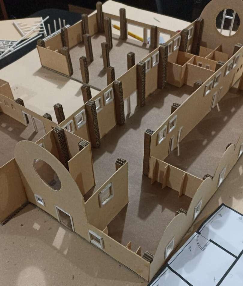 Imágenes del referente 01 y el proceso de elaboración de maqueta.