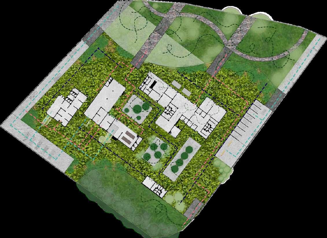 El proyecto se emplaza en una zona urbana y con tres medianeras, dejando solo un frente libre en todo el proyecto, es por ello que se consideró contrarrestar dicha dificultad, otorgando un panorama libre, lleno de vegetación con un espacio público para toda la ciudadanía.