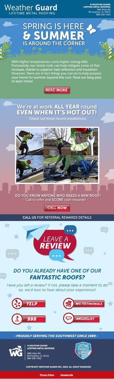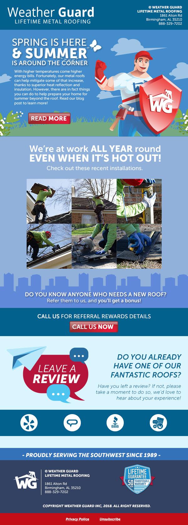 These are just a couple of mailers i worked for Weather Guard a roofing company which we worked from illustratons, to general branding, these were sent to potental and registered Cliens each month, We usually received a document at the end of the month with all the info that was going to be included in next and we created the illustratons needed and decided the format that was ging to be used that month.