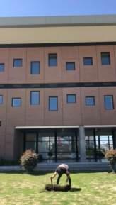 La propiedad privada consiste en definir un bien patrimonial a par3r de una serie de límites que impongo como individuo sobre un objeto o un territorio La intervención M2 surge como gesto de resistencia y apropiación del espacio público, una acción que consiste en arrancar un metro cuadrado de pasto de un edificio público para, posteriormente, desplazar un cuerpo que queda como residuo/despojo de un paisaje apropiado, delimitado, designado y definido.