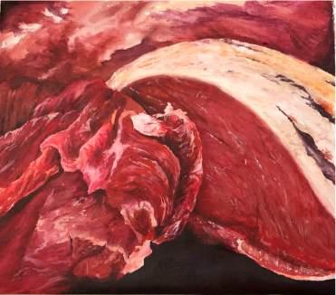 Objeto tras objeto, espacio tras espacio, podría recorrerlo en imagenes, recordar los afectos que a traves de arquitecturas habito cotidianamente. Pero esto cambia cuando pienso en mi cuerpo, si cierro los ojos, no recuerdo haber habitado mi interior, no se como luce mi garganta, tampoco conozco mi corazon o mi hígado. Son arquitecturas que habito desde un imaginario que he construido desde libros de anatomía, series de television, animales abiertos y doctores que me enseñan radiografías o muestras de sangre que aseguran ser evidencia de mi cuerpo. A traves de estas series de pinturas y materias, busco habitar el cuerpo interior, ese que me ha acompanado durante 35 anos, pero que solo lo reconozco desde una mirada ajena.