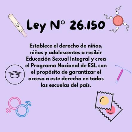 N° 26.150 en Argentina. Busca que niños, niñas y adolecentes reciban informacion cientifica, laica y con perspectiva de género.