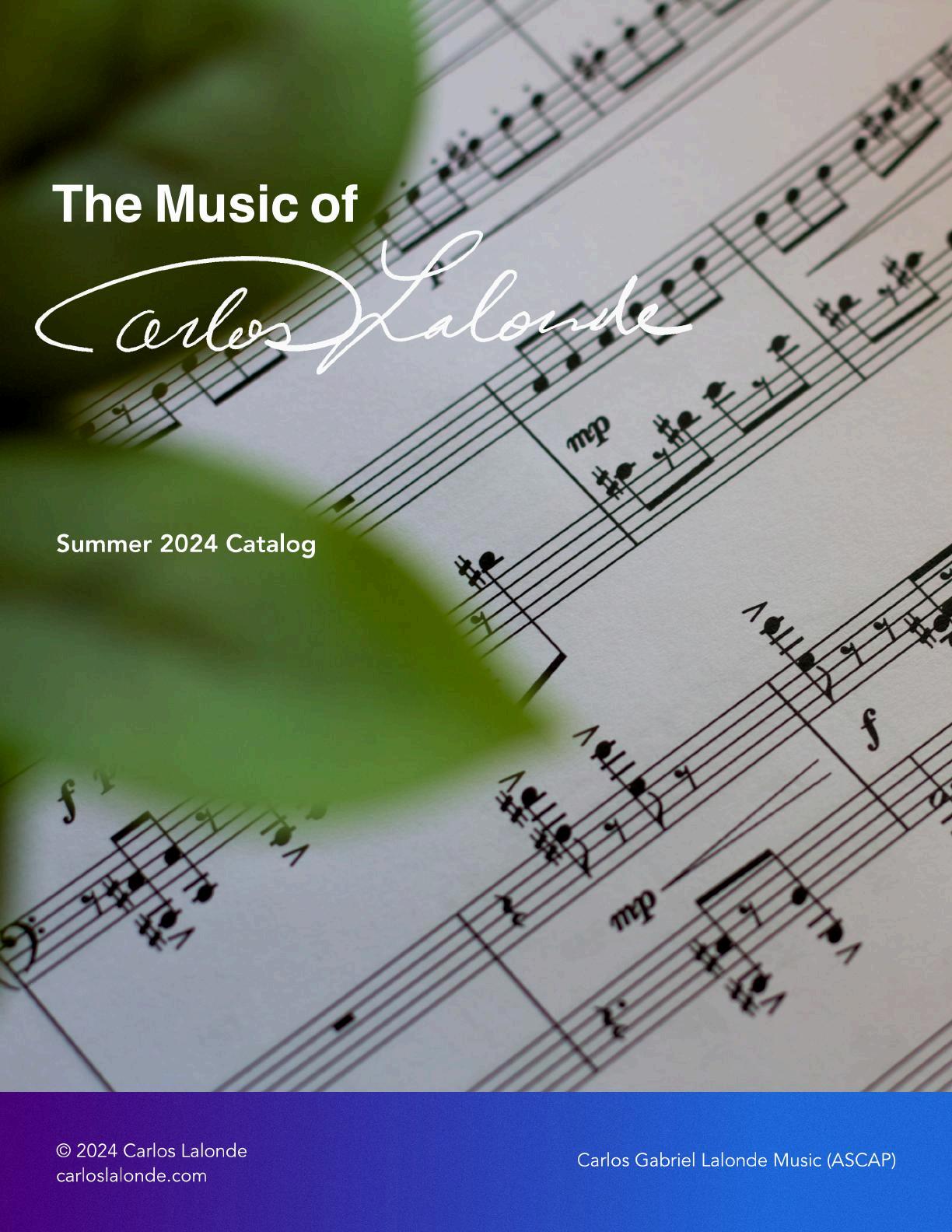 Welcome to the Summer 2024 edition of my music catalog. Discover "Summer's Farewell," a captivating blend of wind ensemble and electronics, and "Chasing Sunbeams," a vibrant string orchestra piece and many more. Each piece is beautifully presented with links for easy perusal and direct purchase. Elevate your next performance with these inspiring compositions.