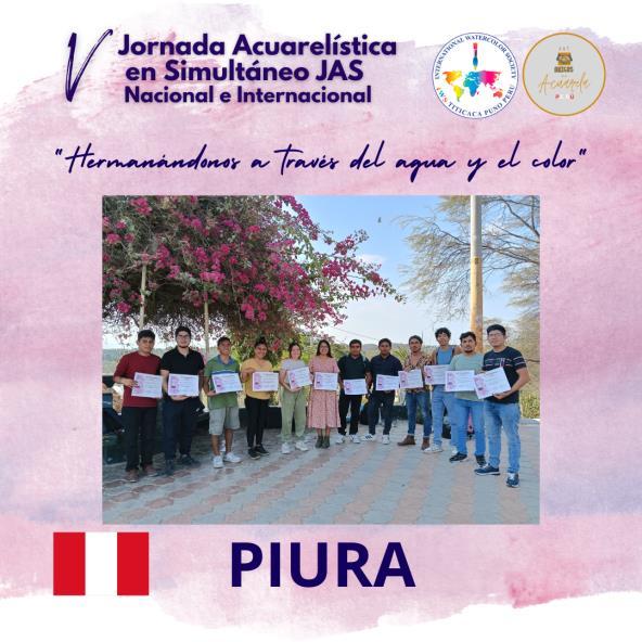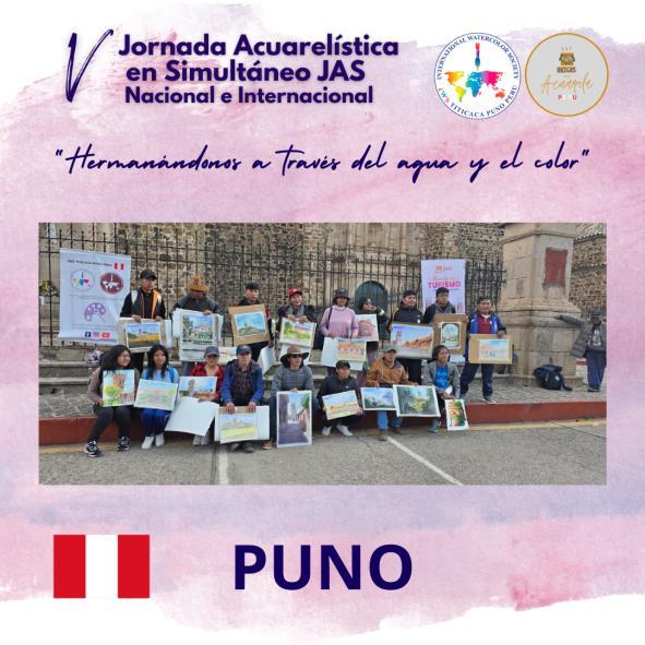 IWS TITICACA PUNO PERU, filial de la International Watercolor Society, celebra con mucha alegría y satisfacción la gran convocatoria y trascendencia que ha tenido la V edición de la JAS, realizada el 22 de septiembre de 2024, fecha que queda marcada en la historia de la acuarela continental, con más de 400 participantes, 30 coordinadores, 18 colectivos en un total de 28 locaciones en 10 países de este lado del mundo. Desde que venimos participando en las Jornadas Acuarelísticas en Simultáneo, hemos venido tendiendo lazos con diferentes colectivos y artistas a nivel nacional, y en esta edición esos lazos traspasaron nuestras fronteras uniéndonos en una sola emoción con Costa Rica, Bolivia, Colombia, Panamá, Ecuador, México, Venezuela, Brasil, Argentina, y en Perú con Puno, Arequipa, Lima, Piura, Ayacucho, Cusco, Ancash, Trujillo, Huánuco, Juliaca, Cerro de Pasco, Huancayo, Tacna, Cajamarca, Ucayali y El Callao; un gran logro cuyo mérito es de los coordinadores de cada sede.
