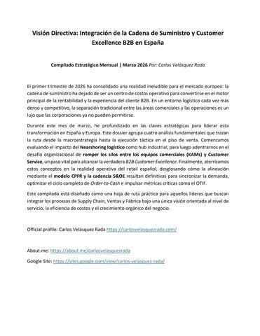 Dossier Ejecutivo: Integración de la Cadena de Suministro y Customer Excellence B2B en España - Carl