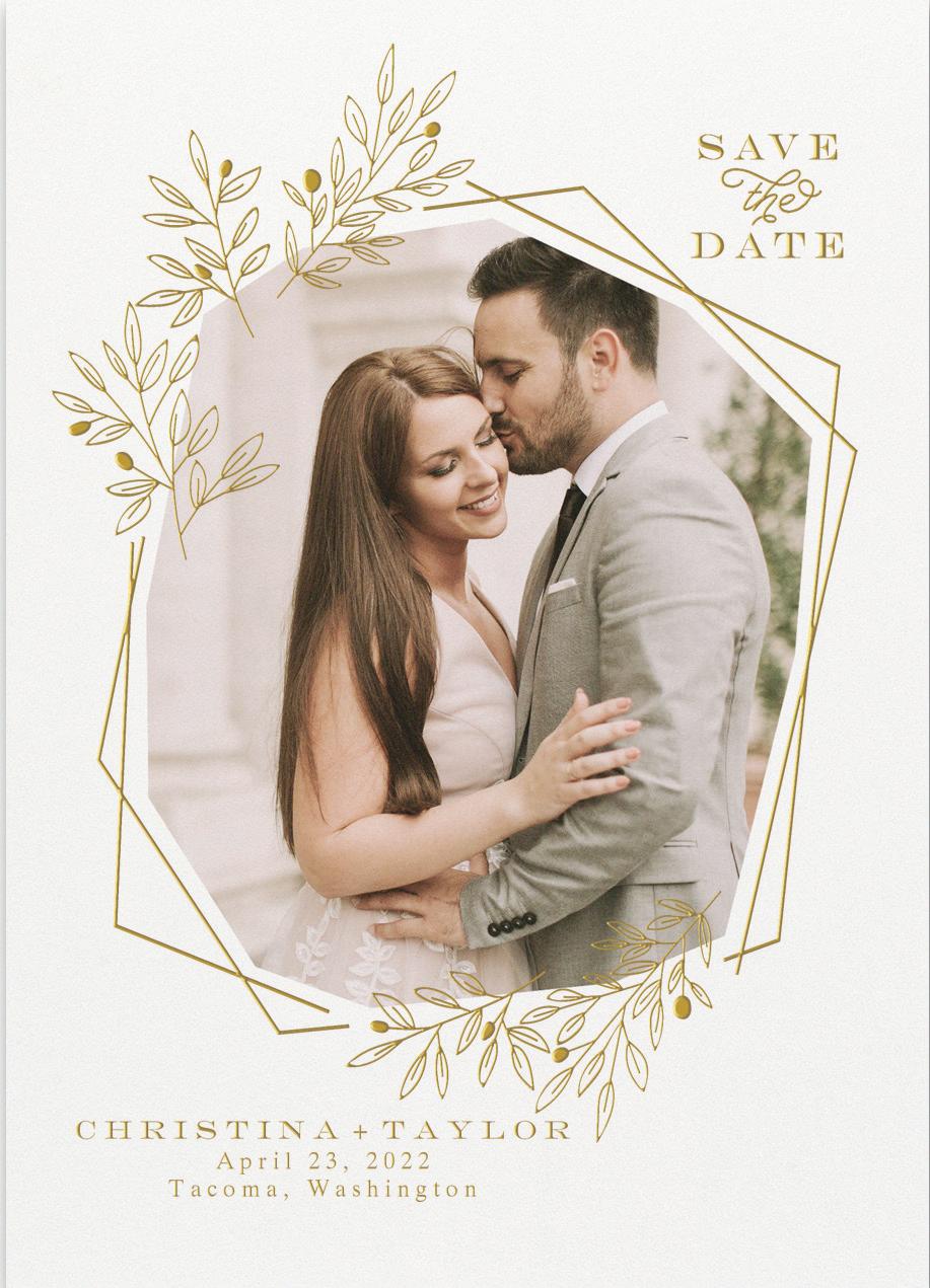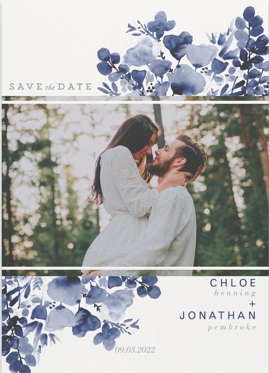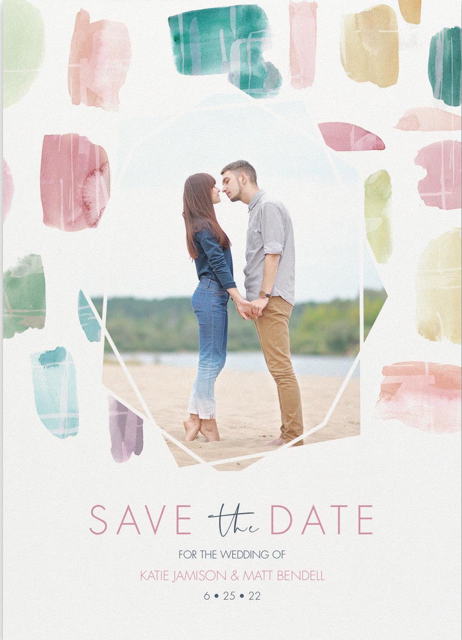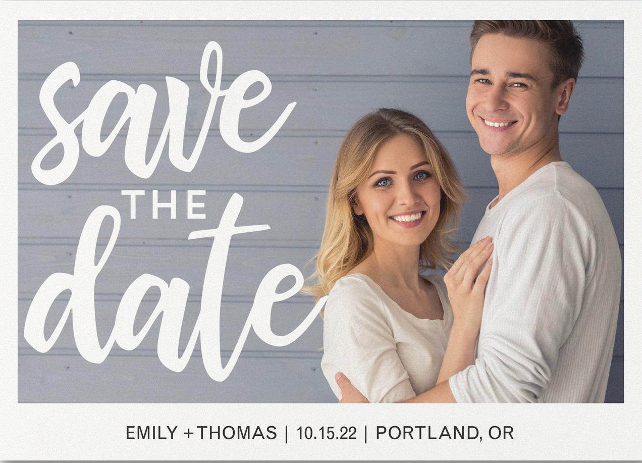 Save the Dates include white Euro-flap envelopes and offer three formats. Large cards feature double-sided printing or foiling. Large card item numbers are referenced on pages 80-83. To order a small card or magnet, add the letters “SM” to the end of the large card item number. When ordering online, please note that the magnet format is an upgrade option to the small card.