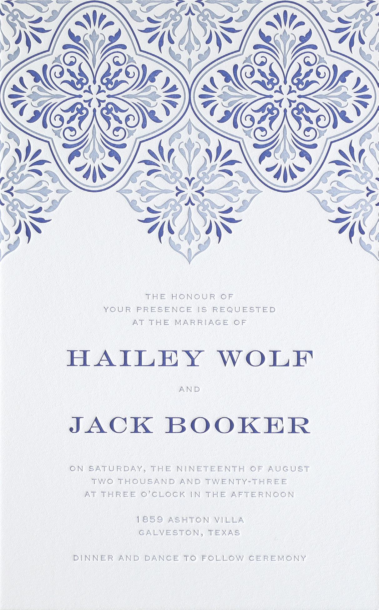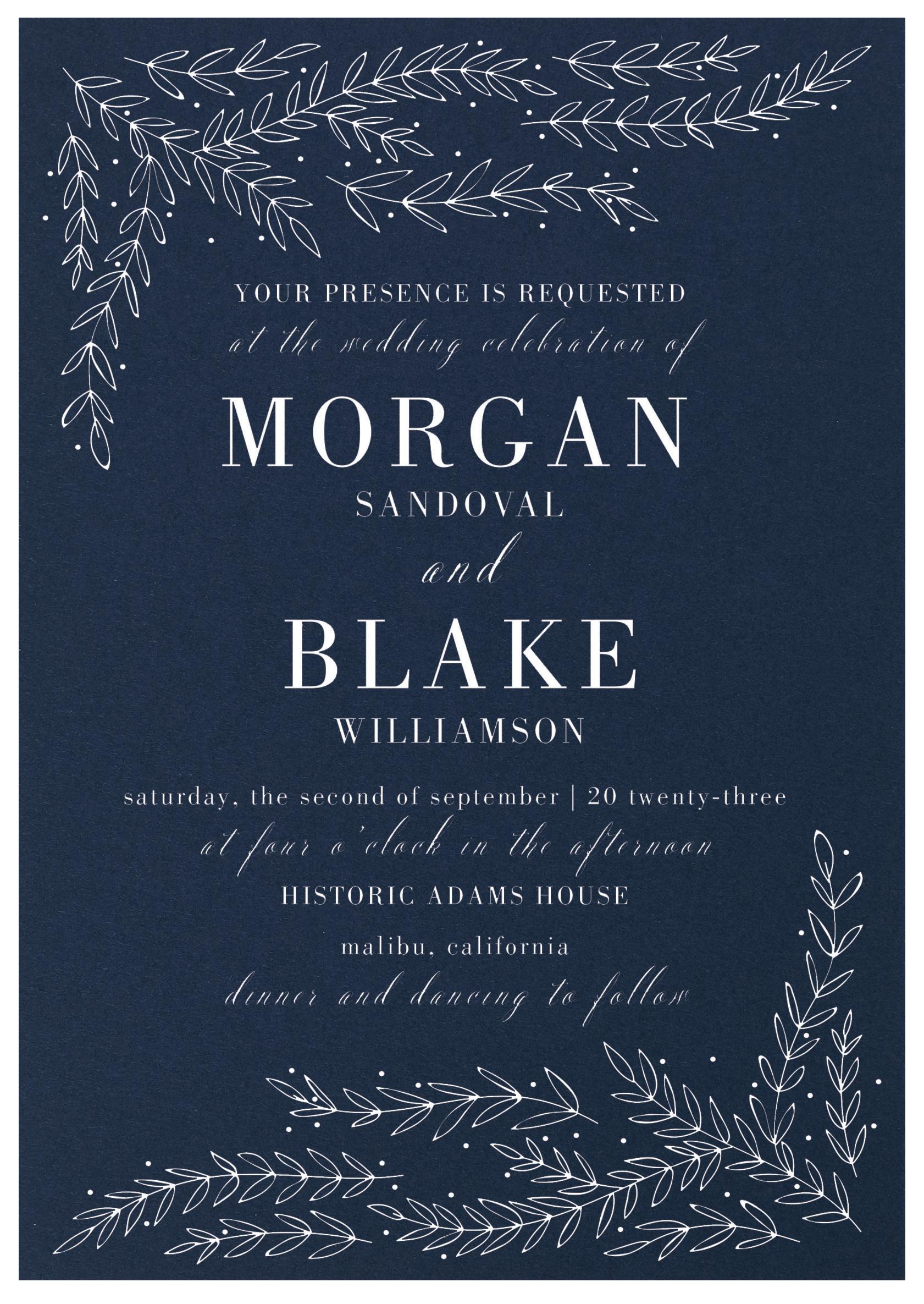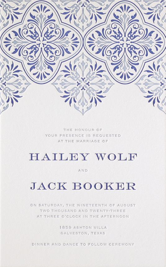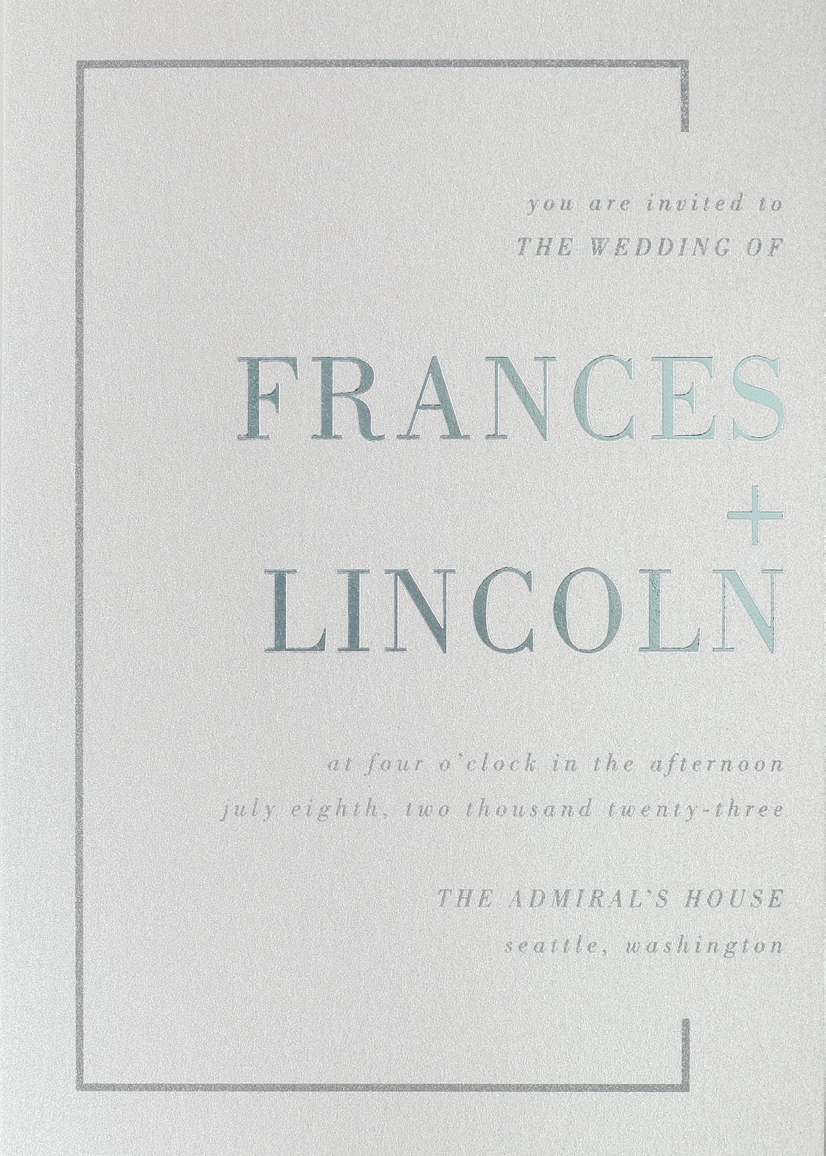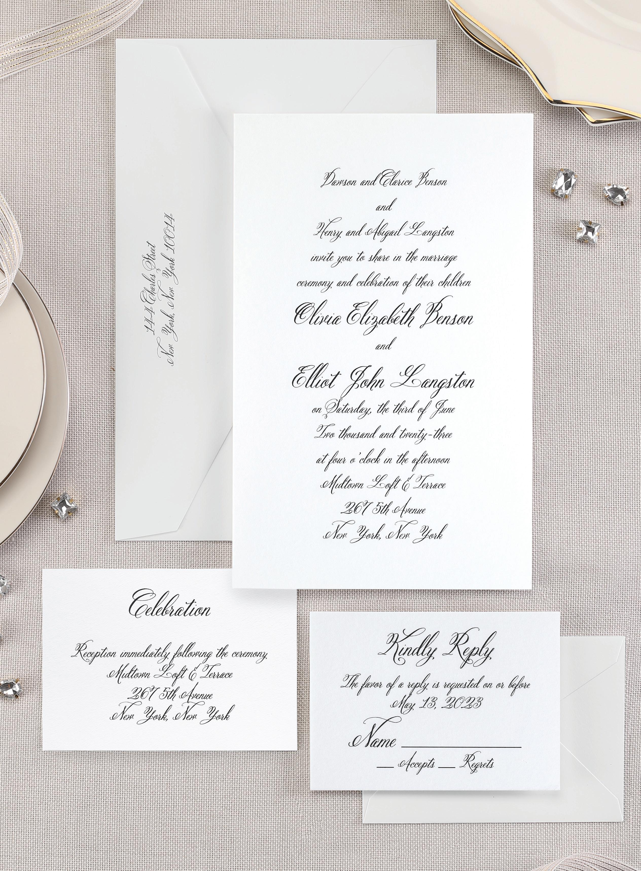 All classic invitations are A8 (51⁄4" x 77⁄8") and include matching inner and outer envelopes.
