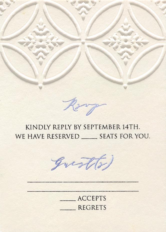 Personalized Printing – Your guests’ names and/or addresses are imprinted on the inner or outer envelopes, or both! Simply upload your guest list and choose an ink color.