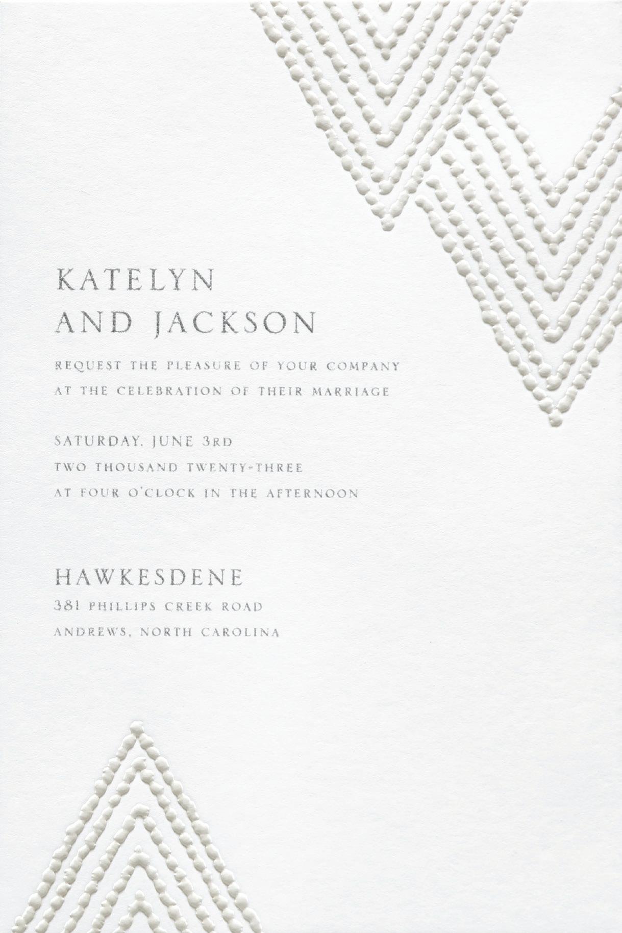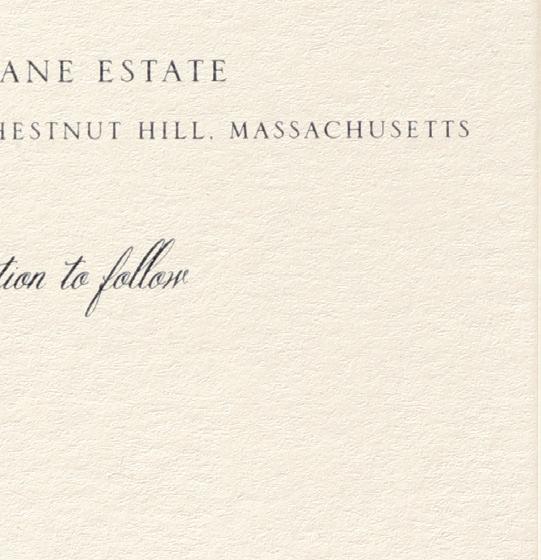 Fonts: Engravure / Nuptial Script Paper: Smooth 130 lb.