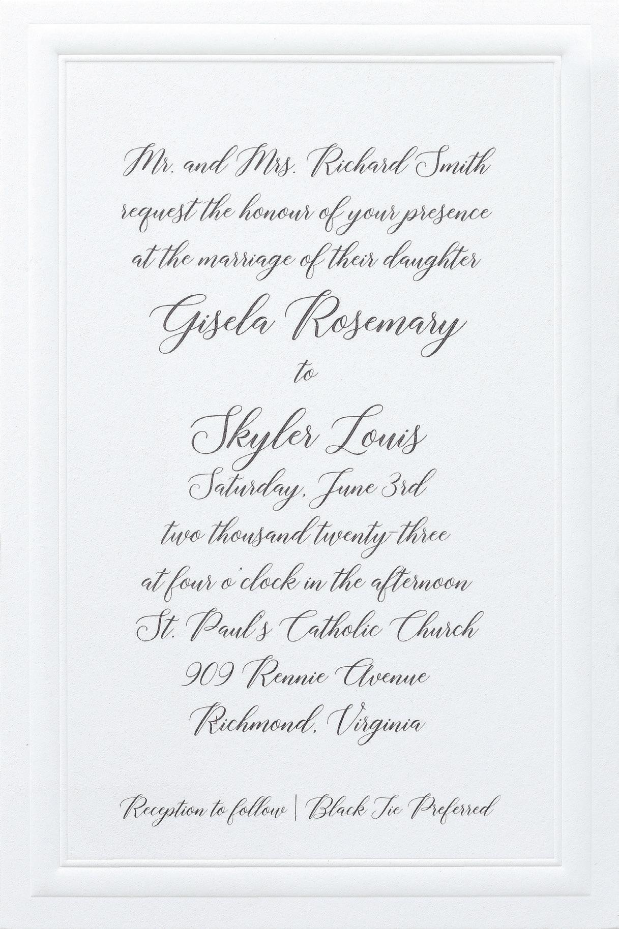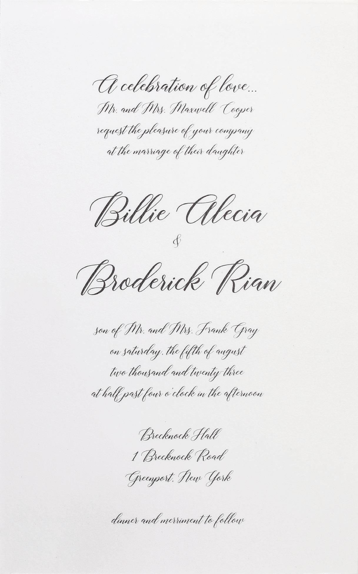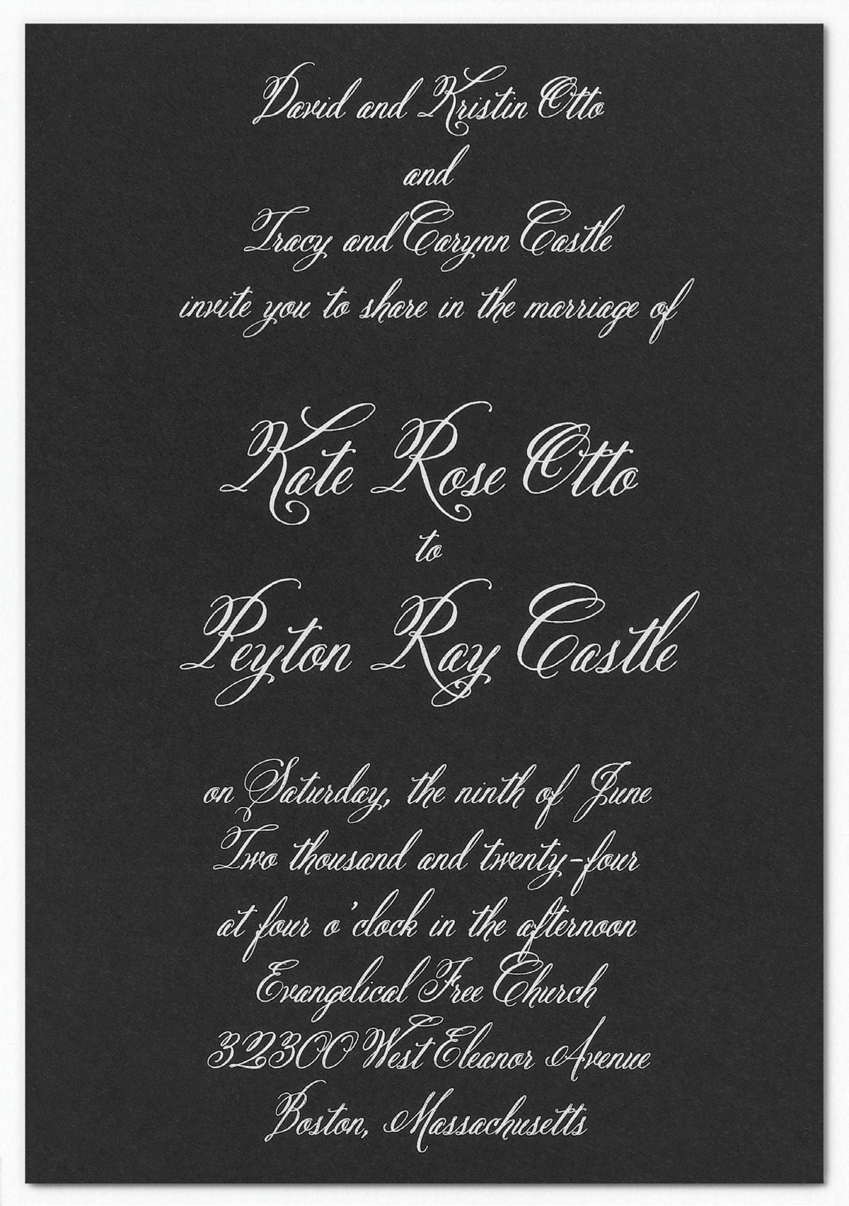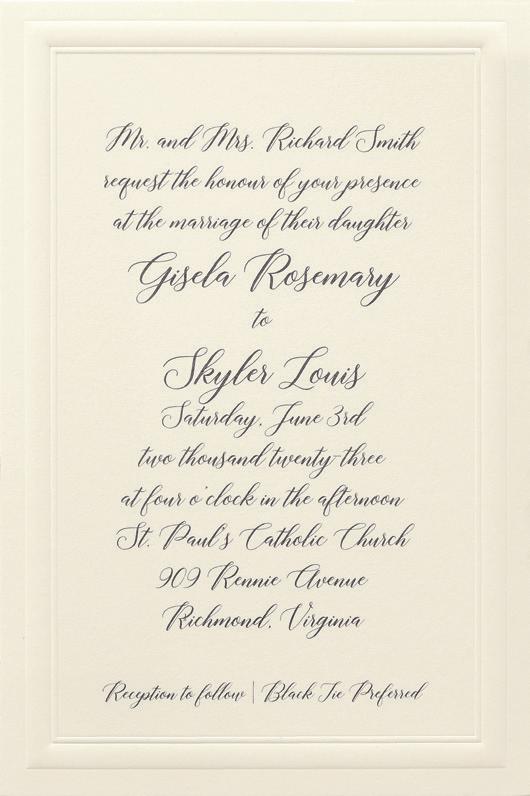 All classic invitations are A8 (51⁄4" x 77⁄8") and include inner and outer envelopes.