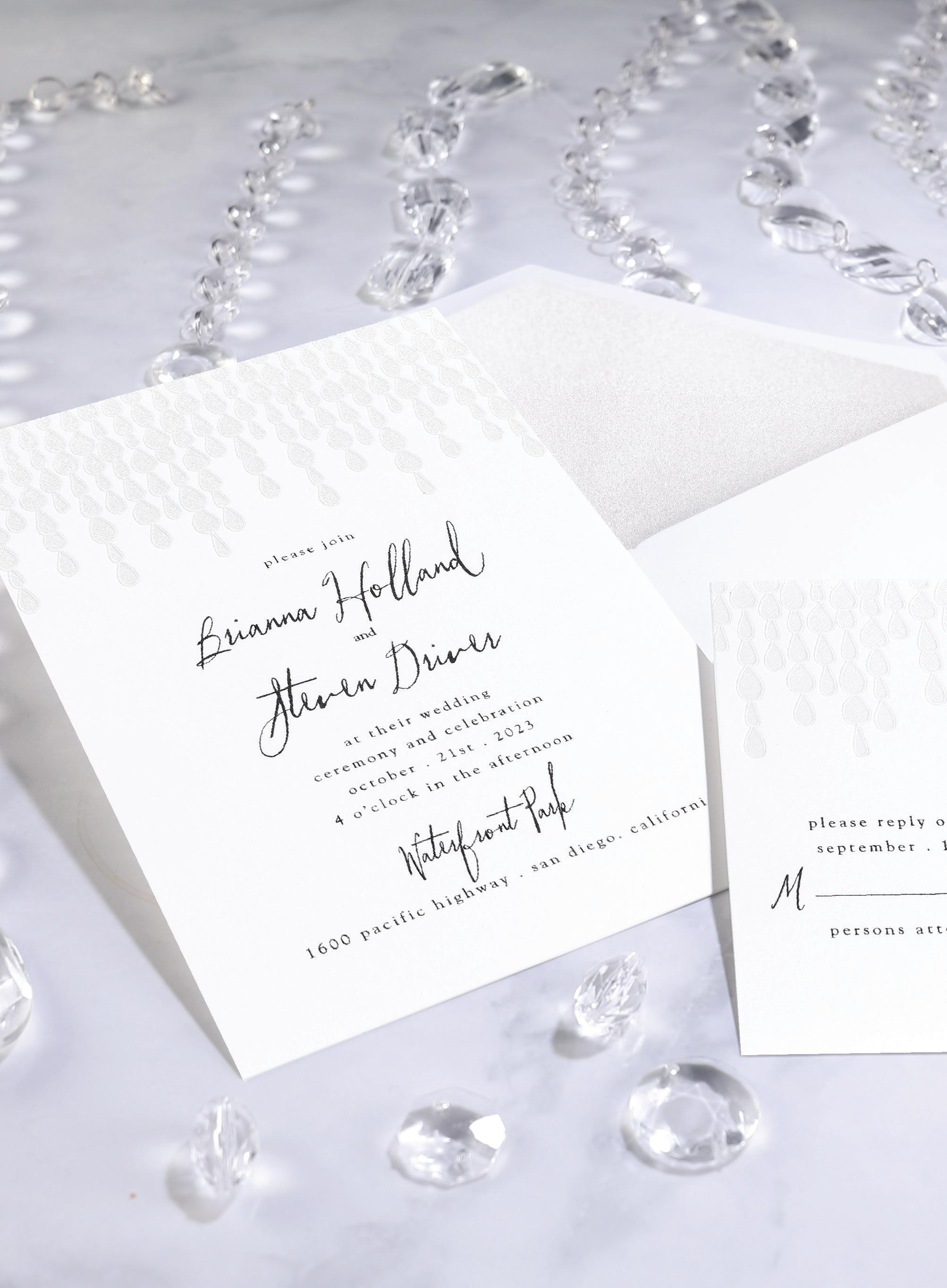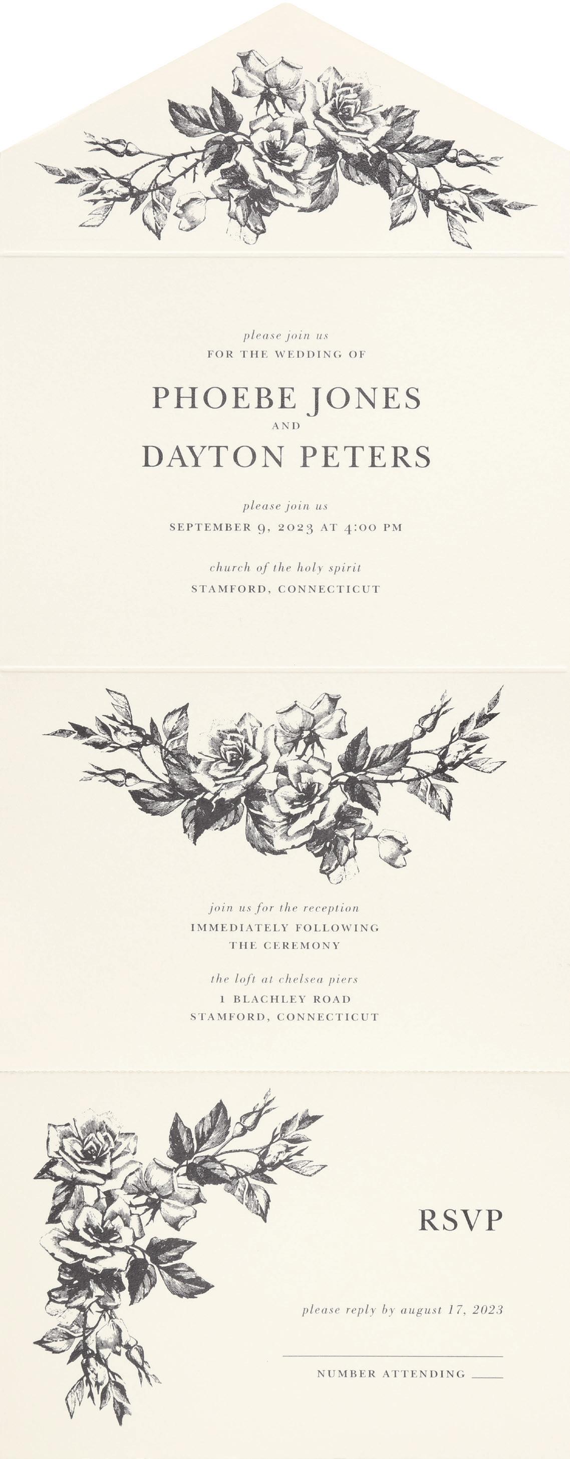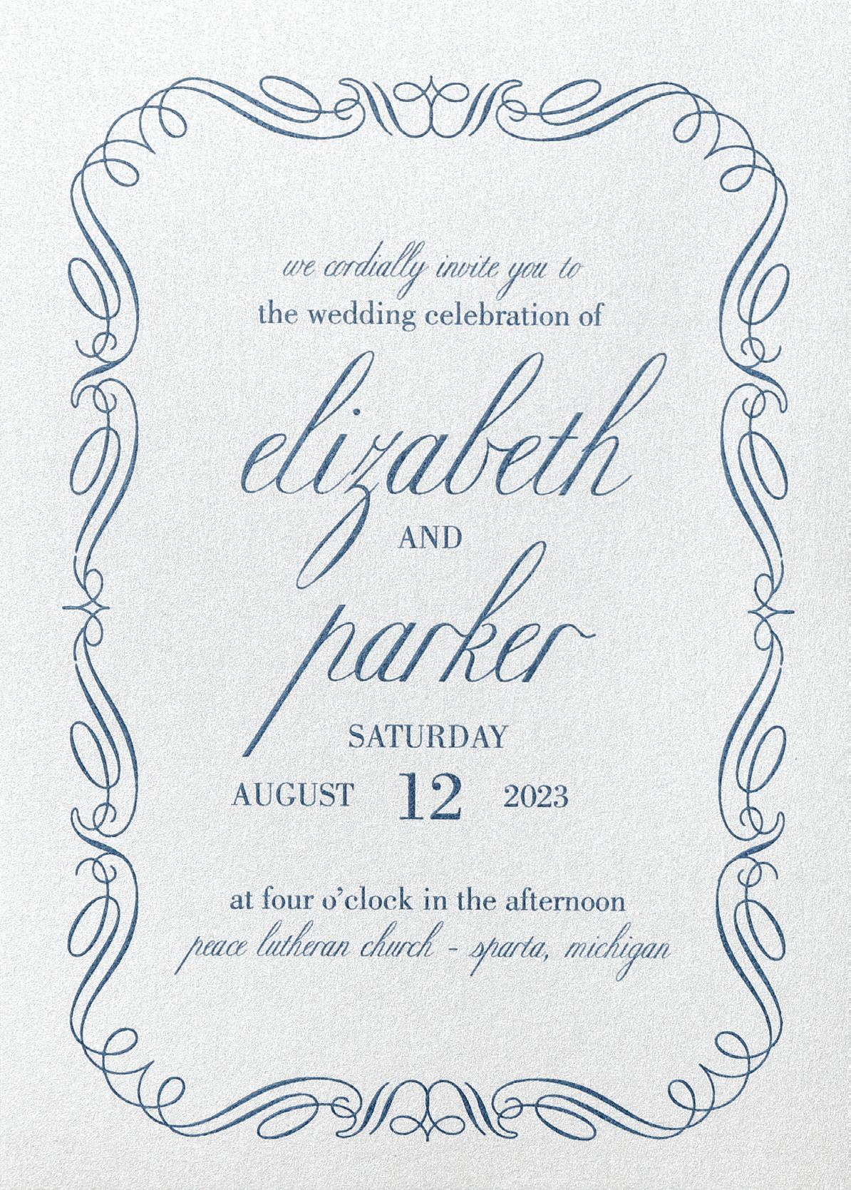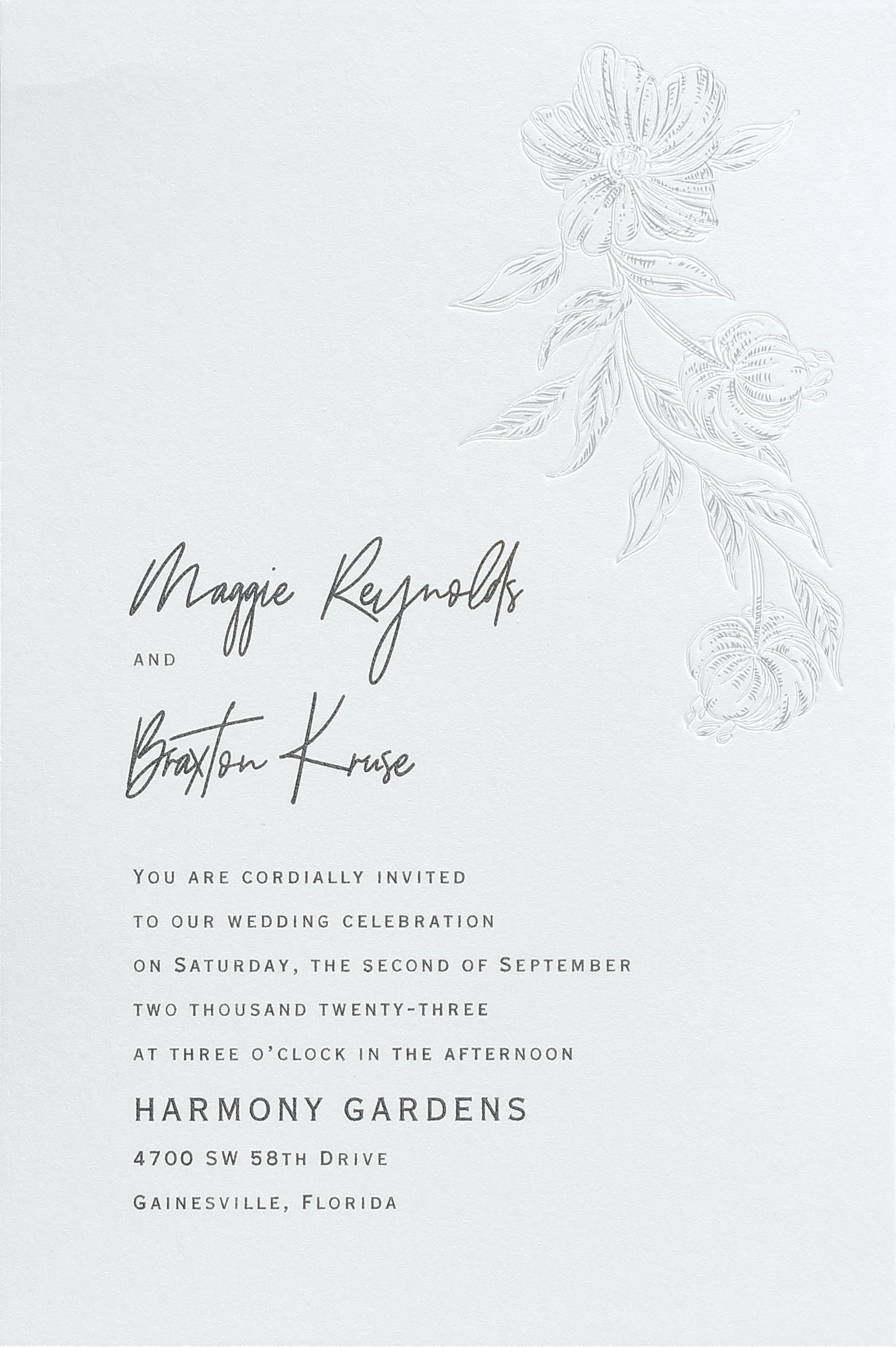 All classic invitations are A8 (51⁄4" x 77⁄8") and include inner and outer envelopes.