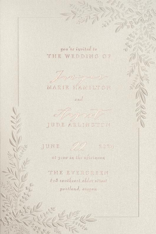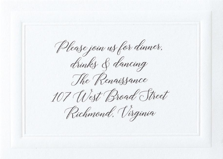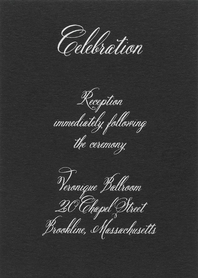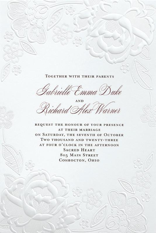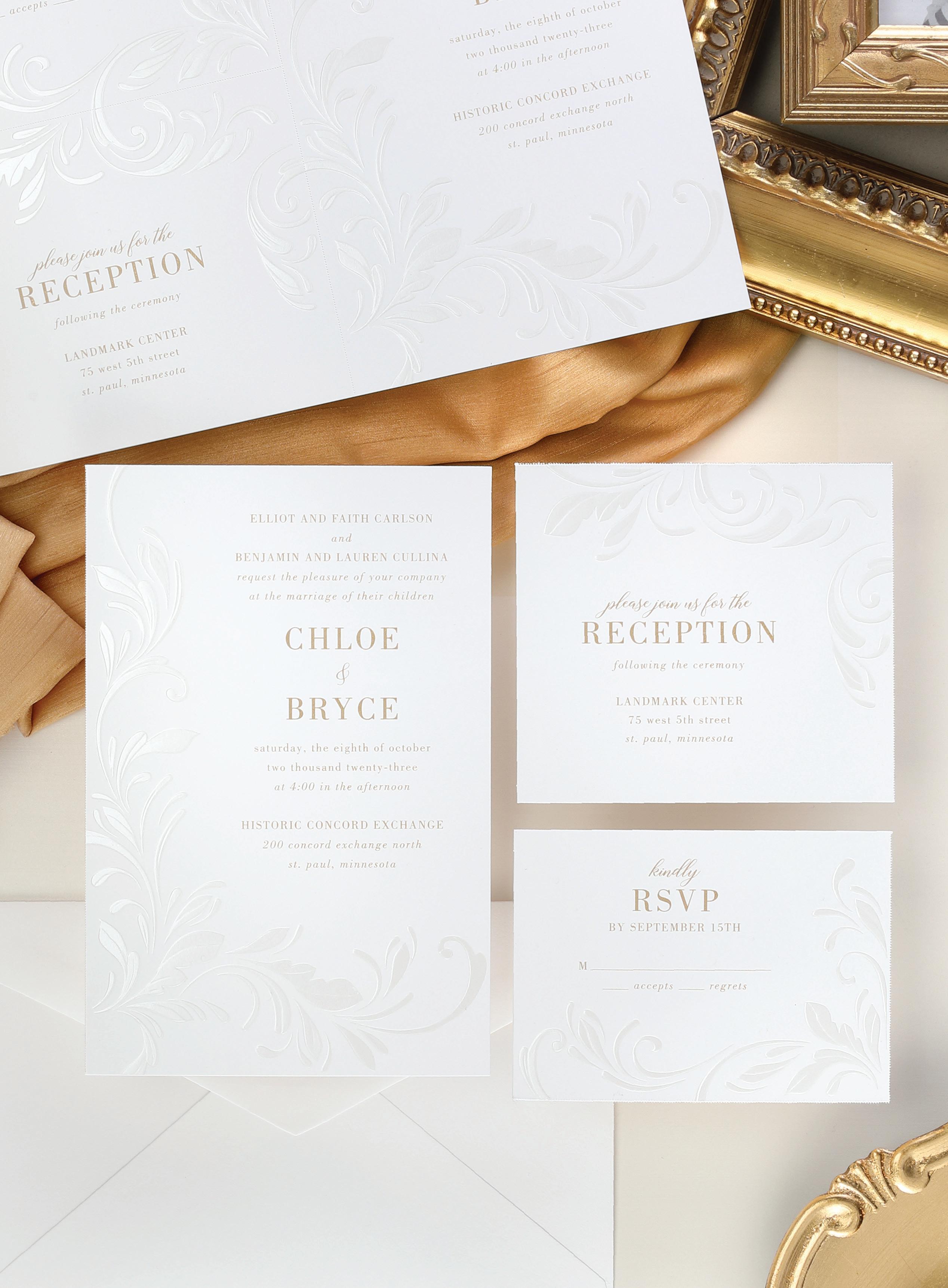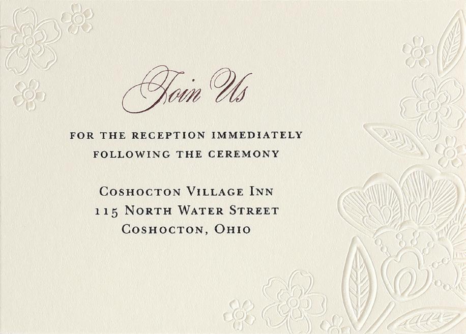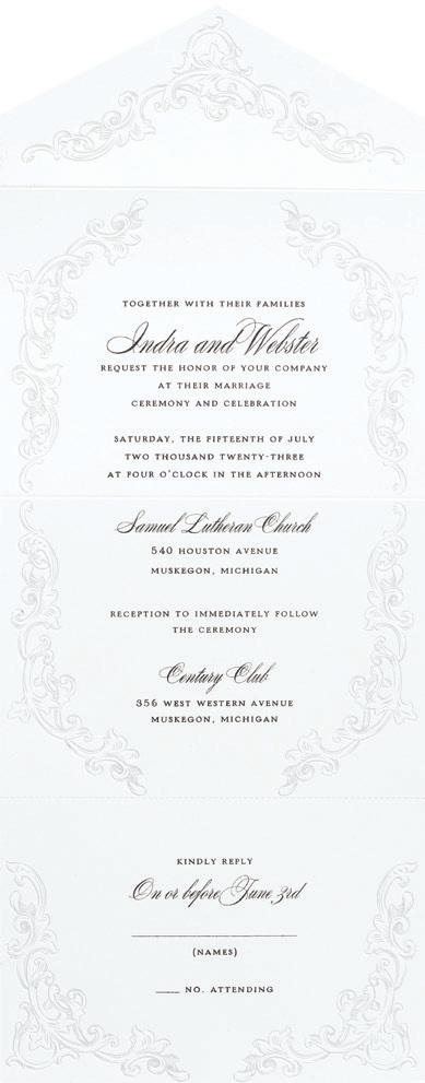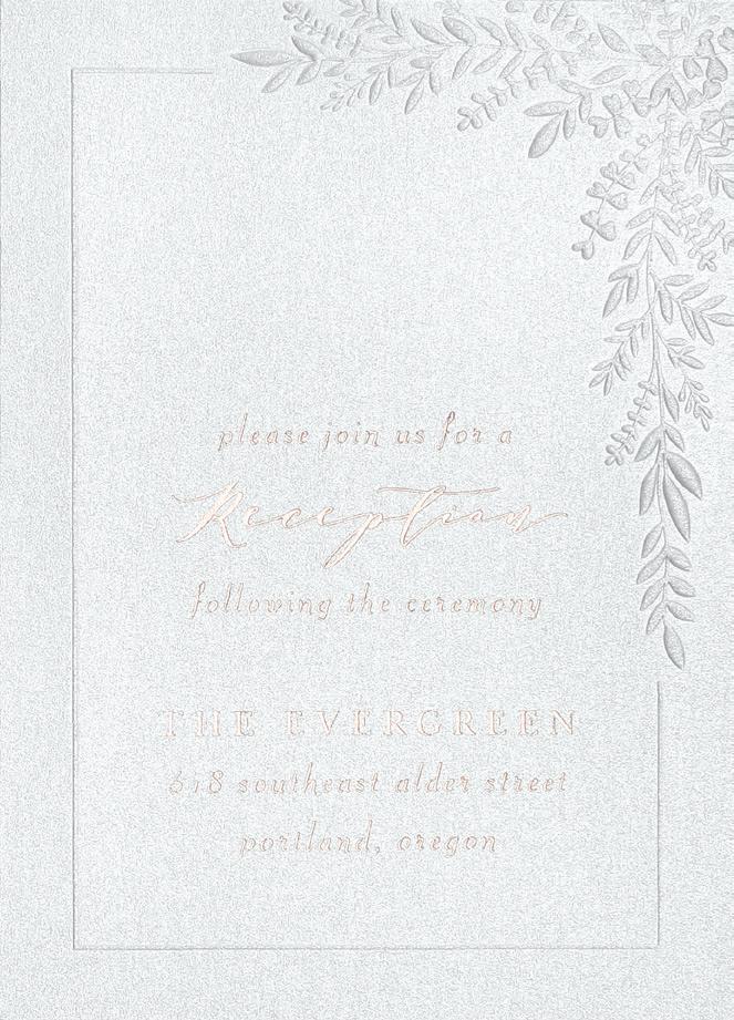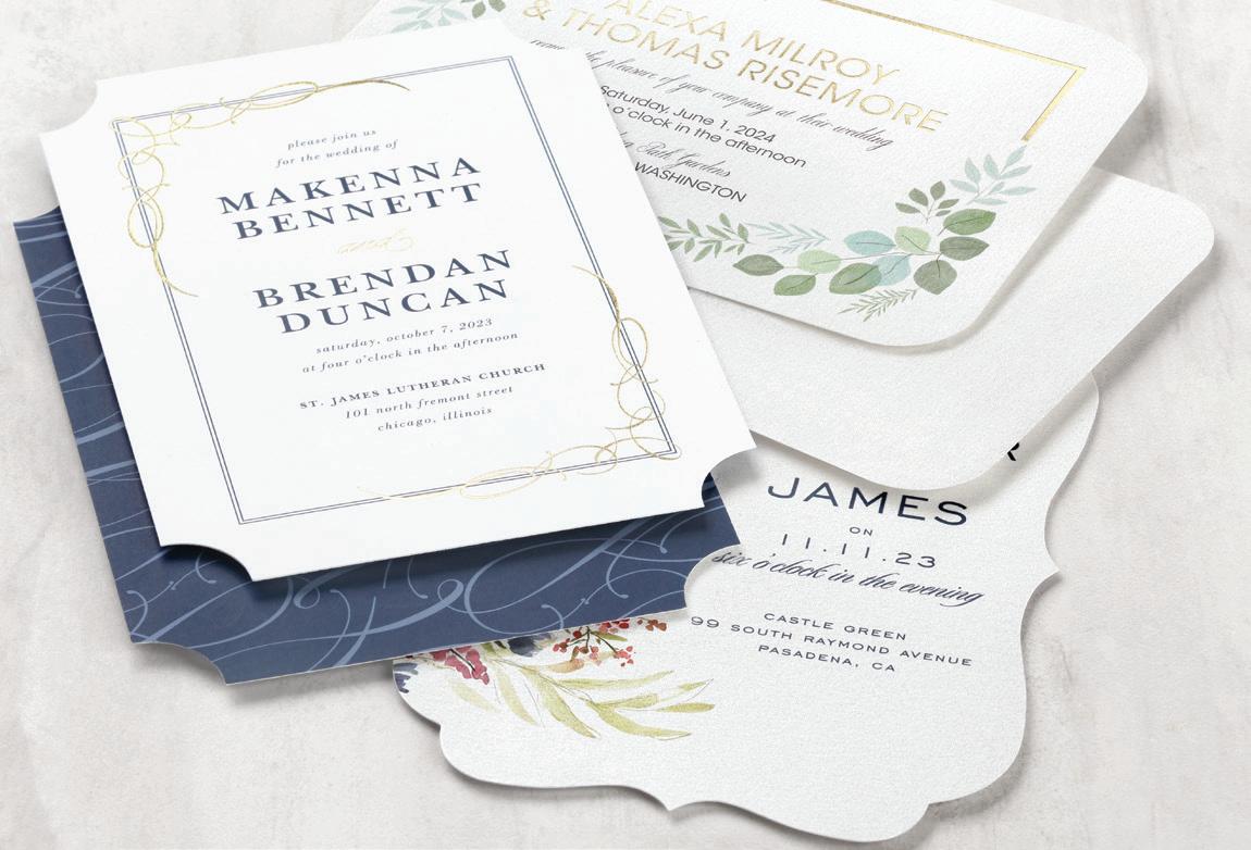 The fall Classic Collection offers these beautiful stocks in white or ecru for invitations (excluding the Distinguished Impression invitation on pages 14-15)