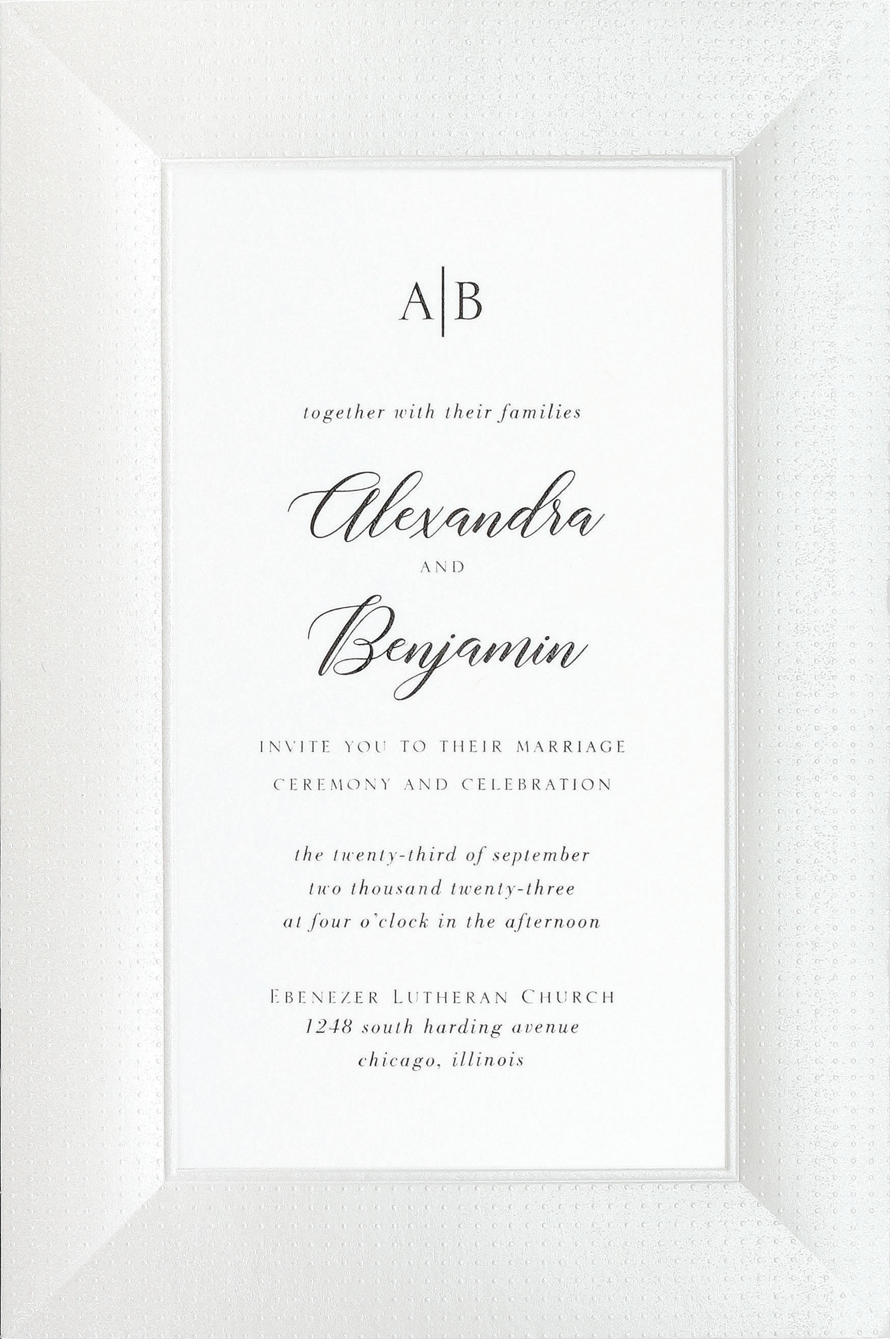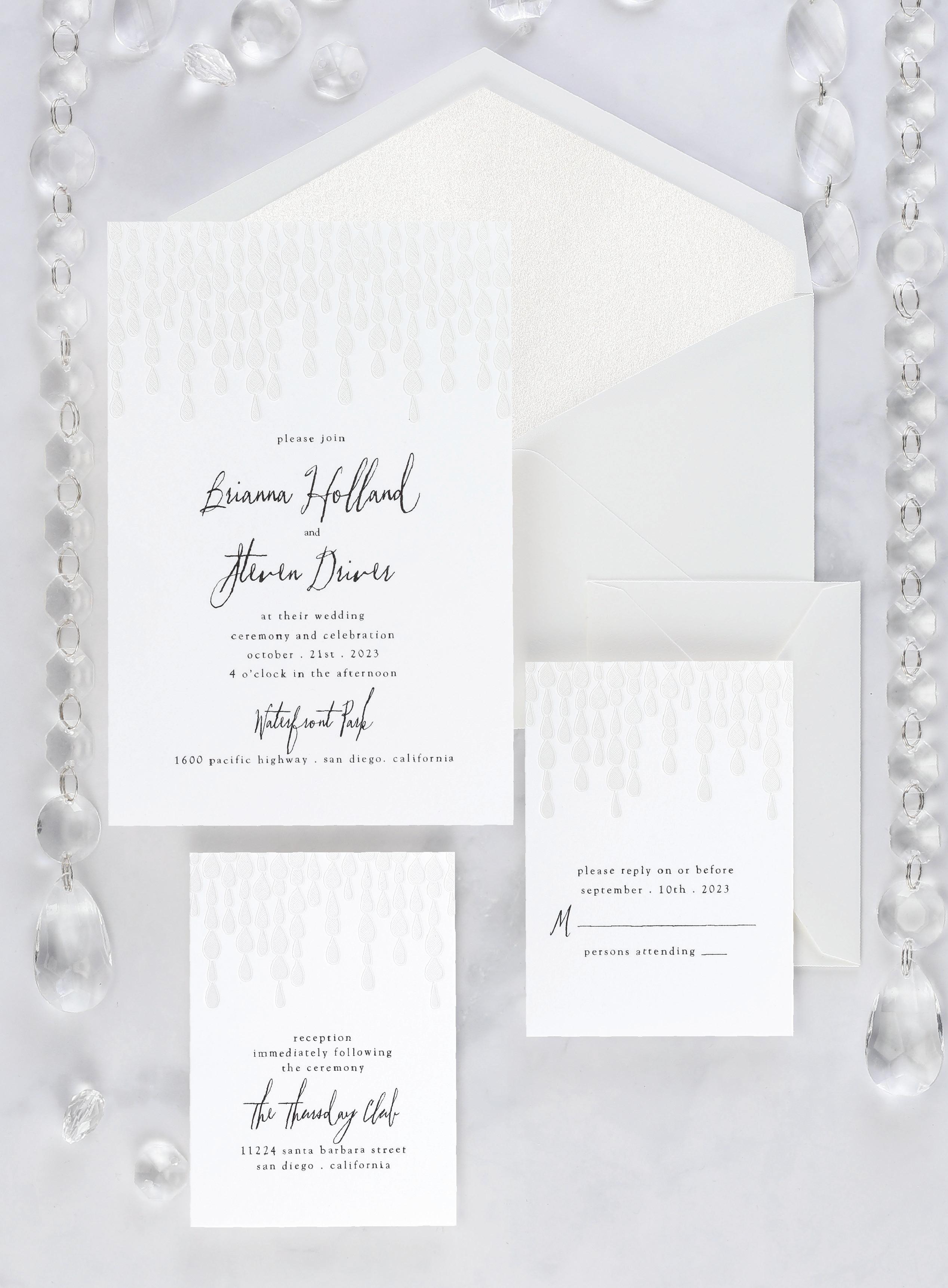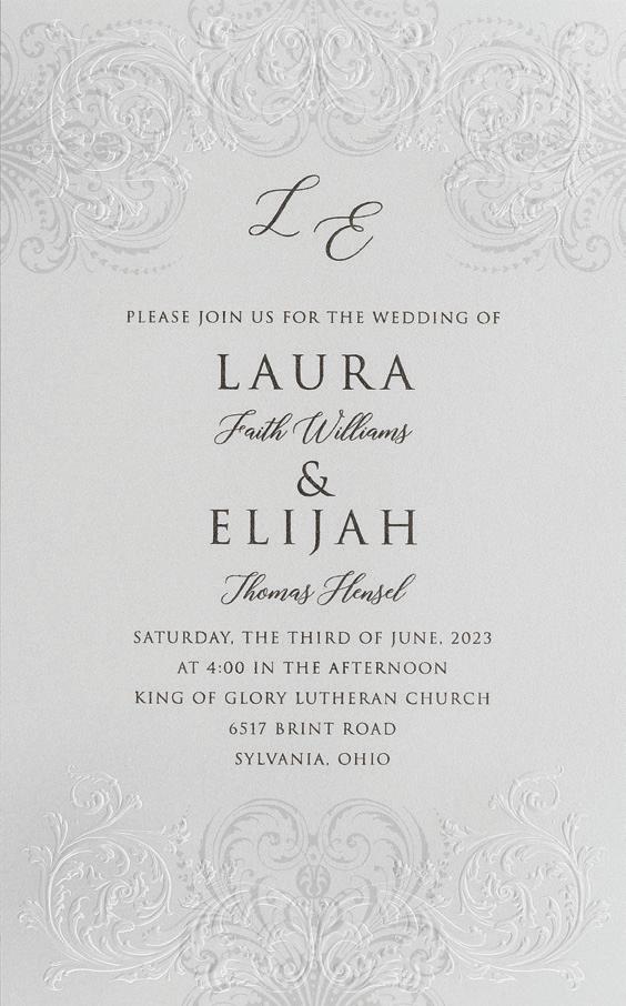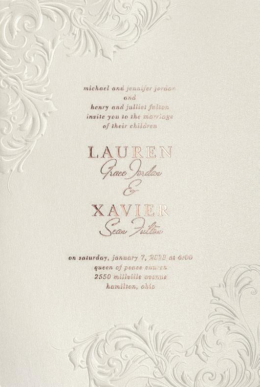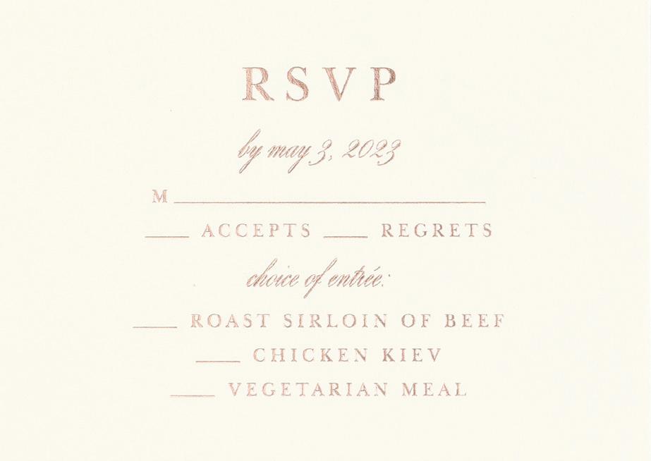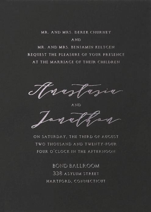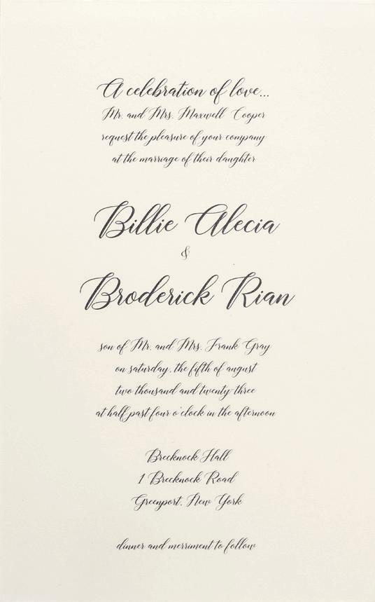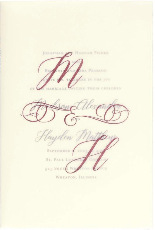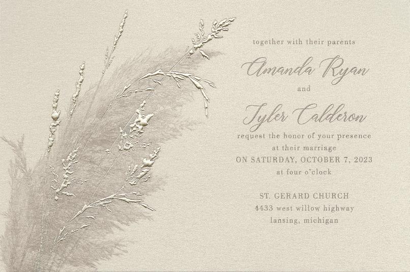 The fall Classic Collection offers these beautiful stocks in white or ecru for invitations (excluding the Distinguished Impression invitation on pages 14-15)