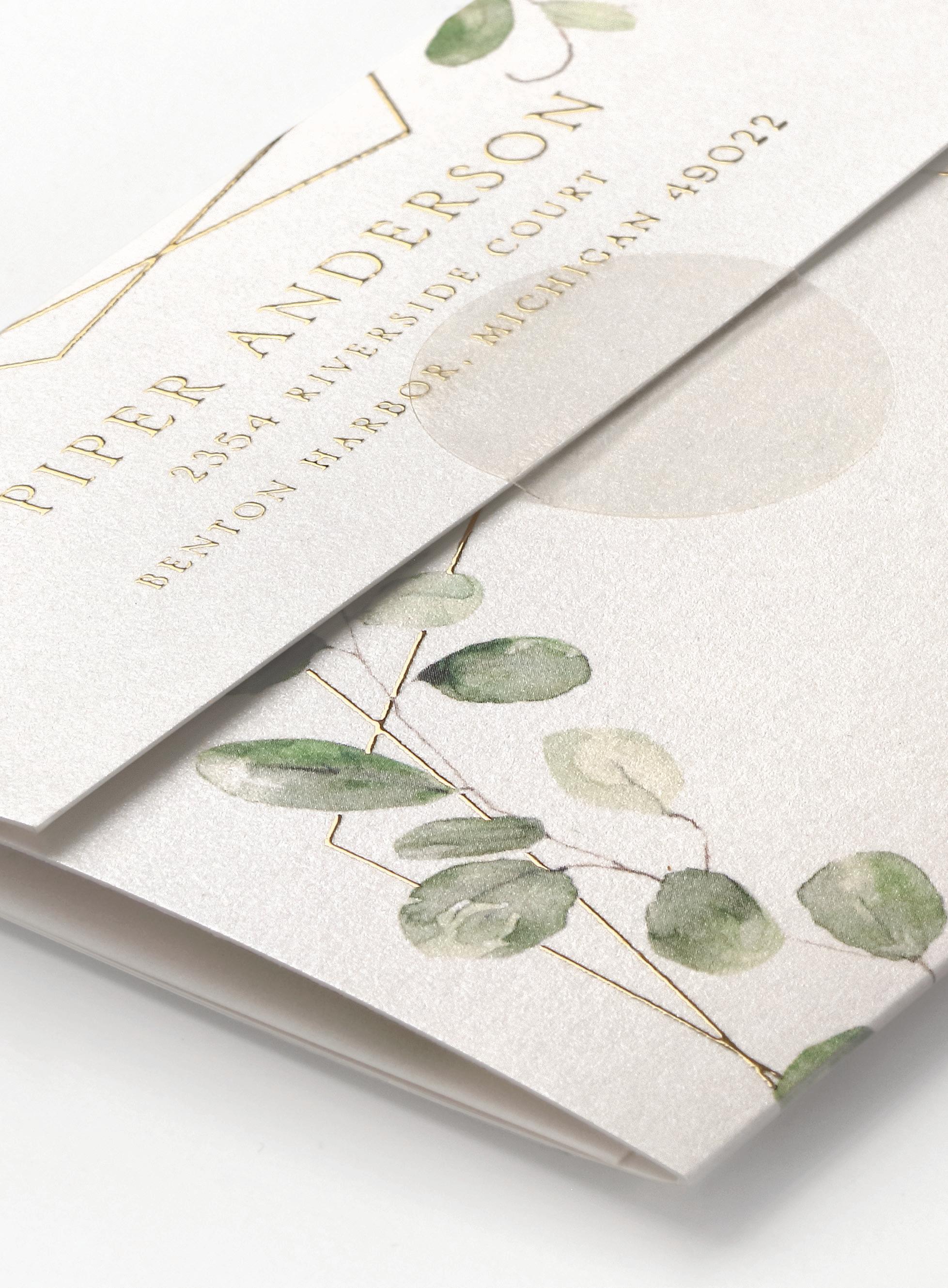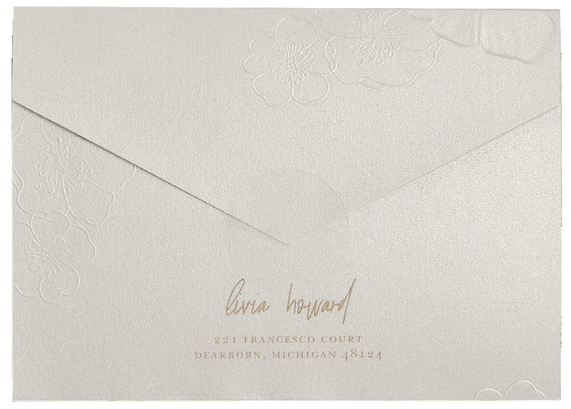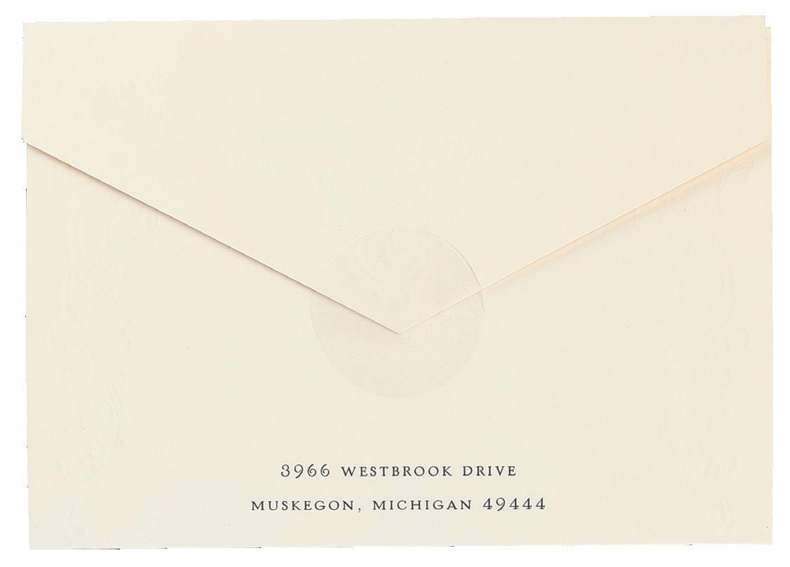 Return Address Printing – Your return address is printed on the back envelope flap in either ink or foil.