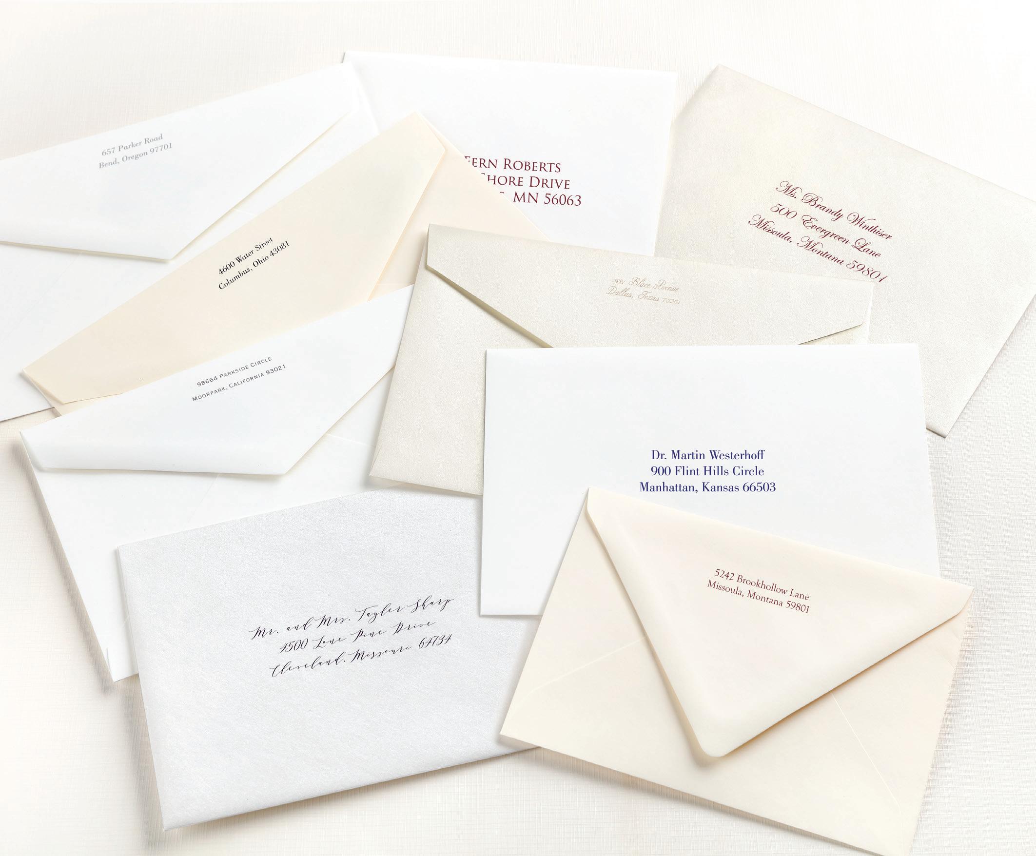 Personalized Printing – Your guests’ names and/or addresses are printed on the inner or outer envelopes, or both! Simply upload your guest list and choose an ink color.