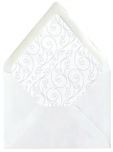Pick one of the digital color options on page 92 and customize one of six amazing designs to coordinate perfectly with your Classic and Luxe wedding invitations. Remove the tab and adhere the liner to the inside of the envelope to get a gorgeous custom look. Available for A8, A9 and A10 envelope sizes. See page 100 for pricing.