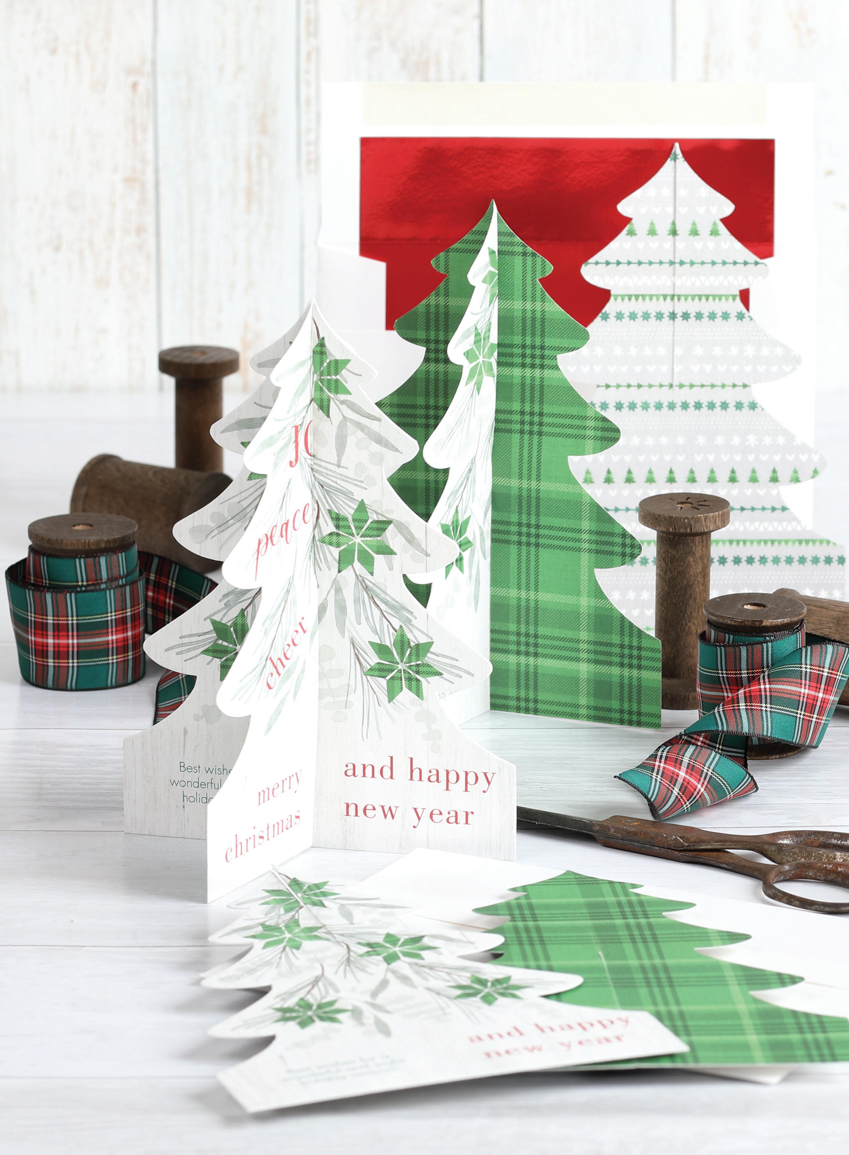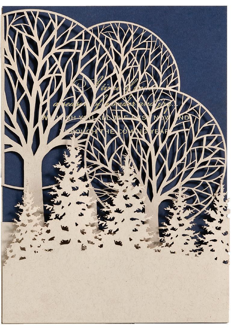 Celebrate the season with classic holiday cards, awe-inspiring religious scenes, or traditional designs with contemporary twists like sparkling foil accents and clever die- cuts. Not to be missed this year is Woodland Beauty, found on page 9. This stunning holiday card features a multi-layered laser-cut design trimmed with gold foil.