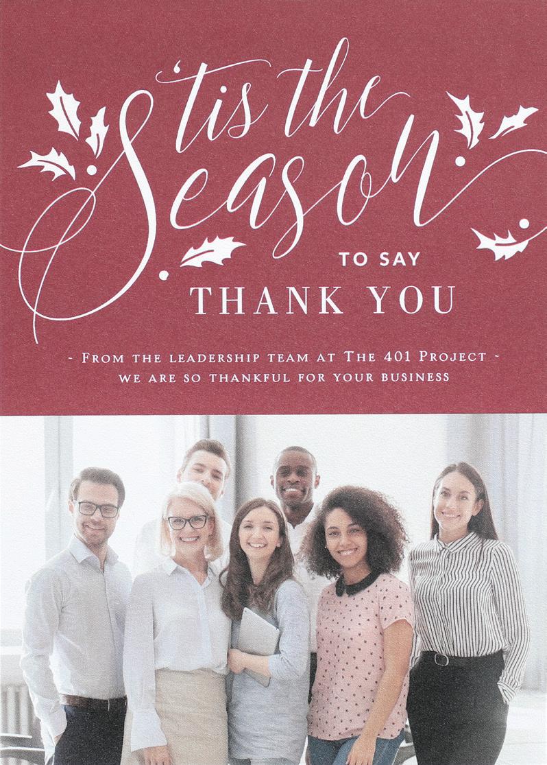 The Business Holiday Collection – An incredible selection of polished and professional cards featuring personalization options that make them truly memorable. This collection will satisfy clients who want to send a heartfelt Thanksgiving card, a sincere Christmas greeting, or ring in the new year with a fun and practical calendar card.