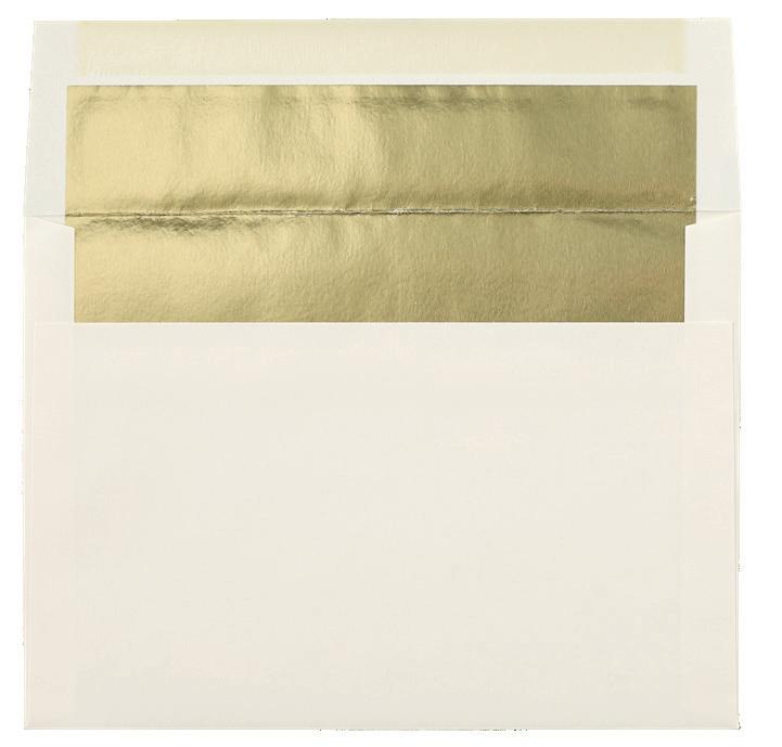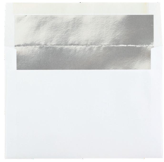 All greetings in this collection include foil lined envelopes. We have chosen a foil color that best coordinates with the card’s design and completes the ensemble beautifully.