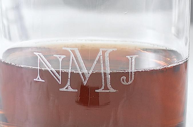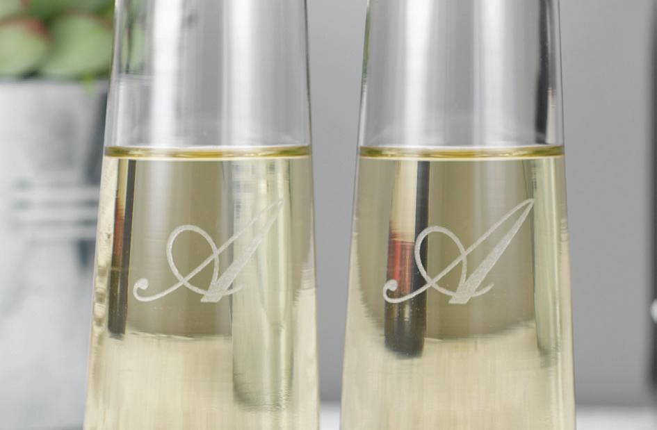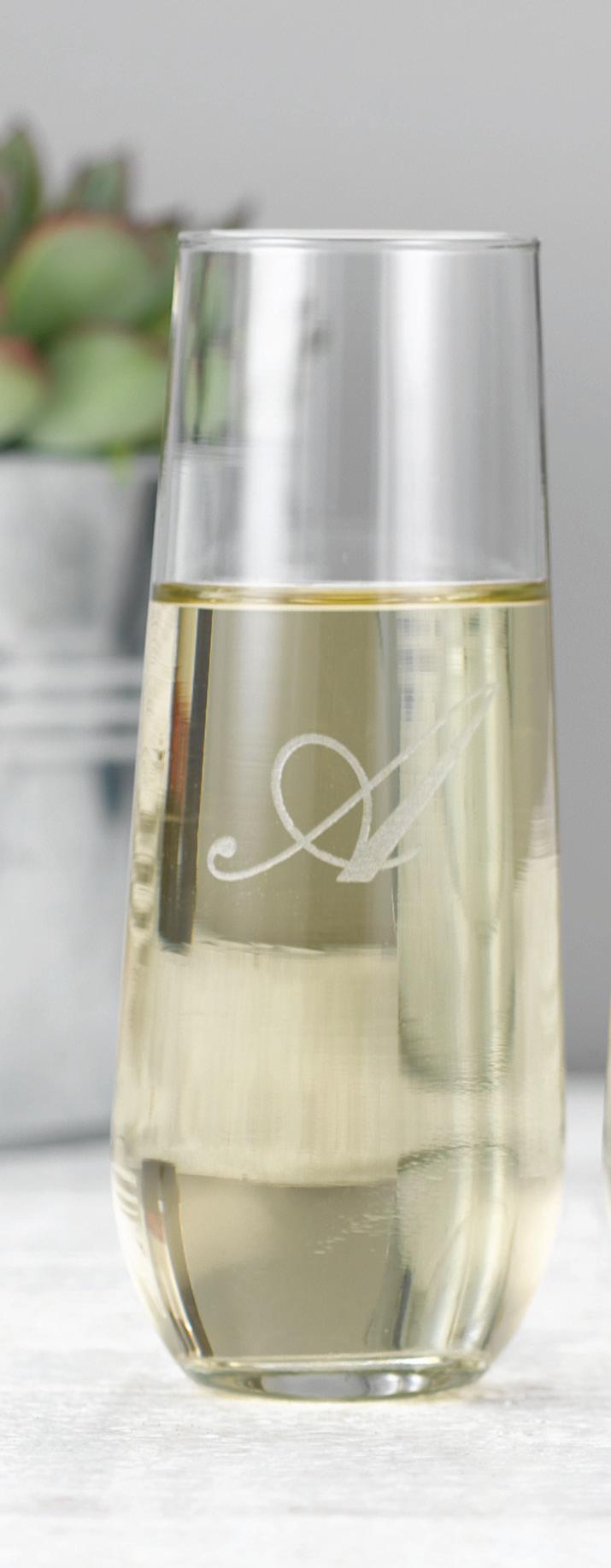 STEMLESS CHAMPAGNE FLUTE SET Set of two. 8.5 oz. S6L shown. Specify single initial.