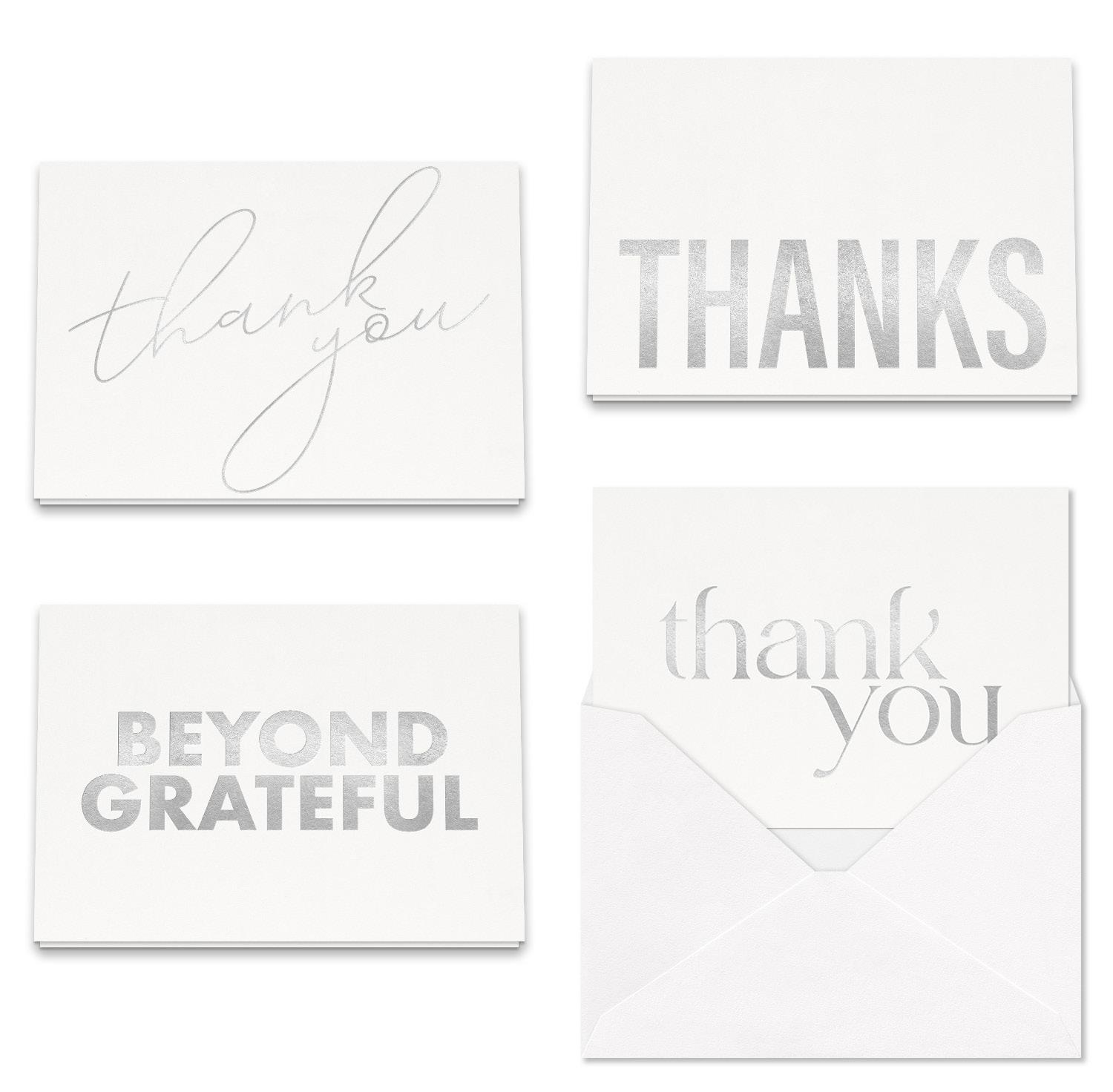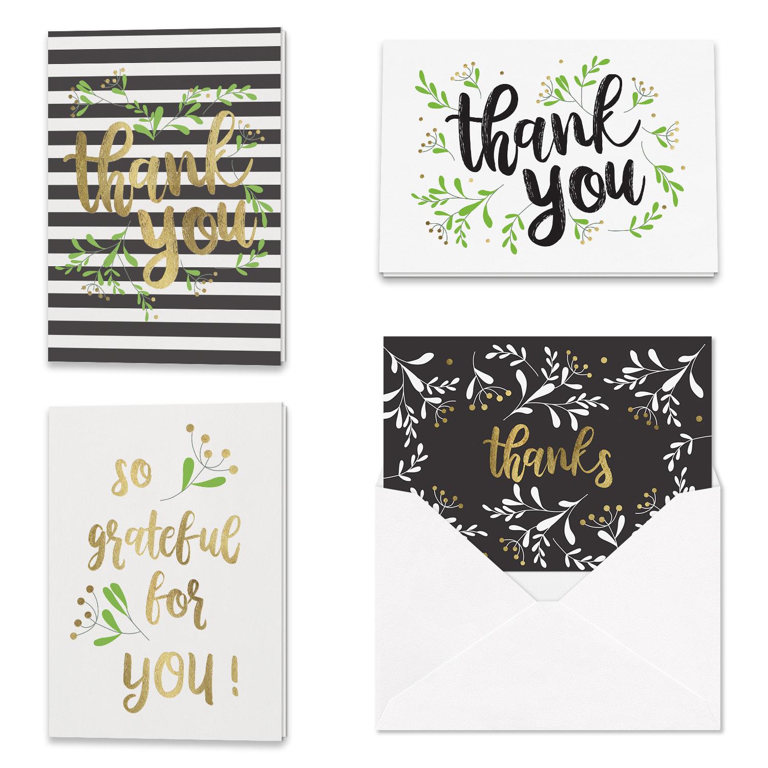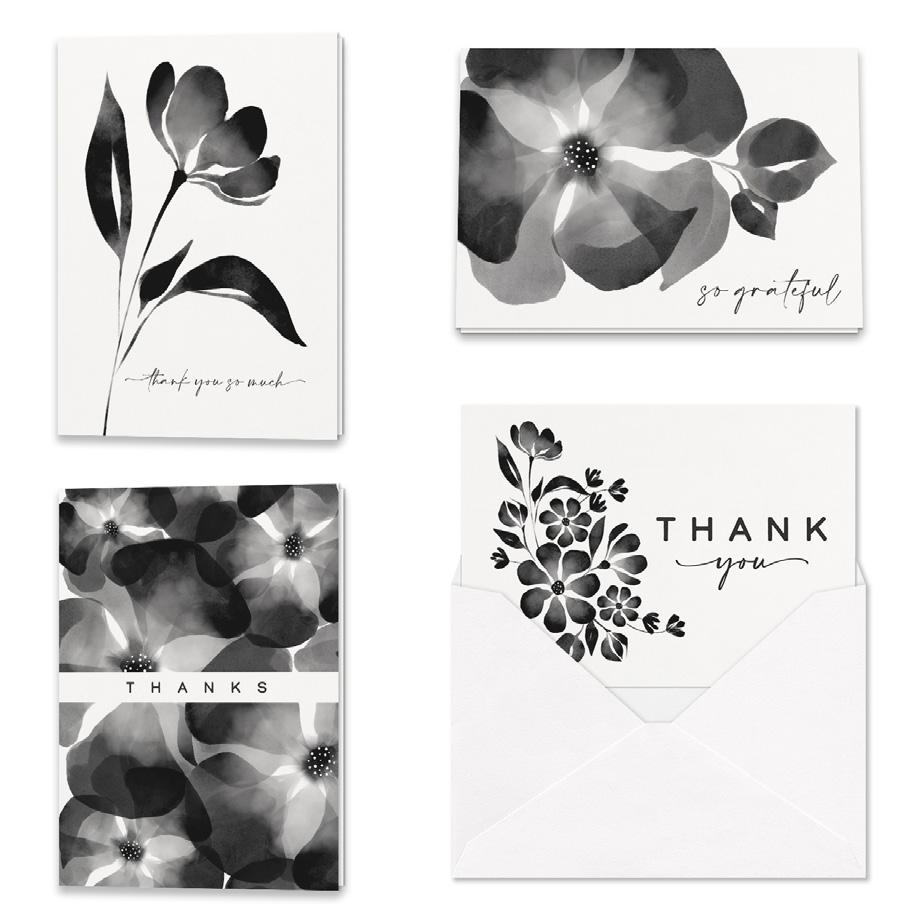 BLACK AND WHITE THANK YOU SET Digital. Package of 24 cards; 6 of each design with blank white envelopes.