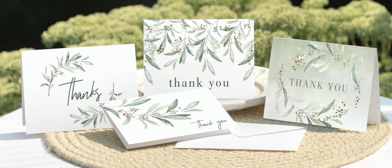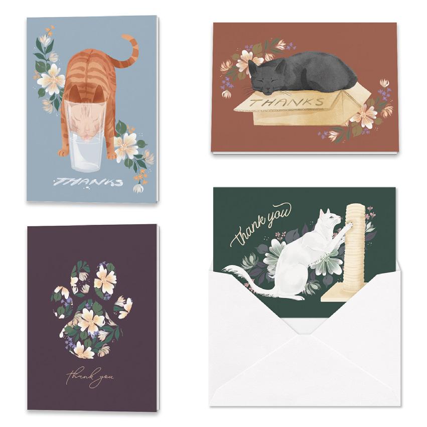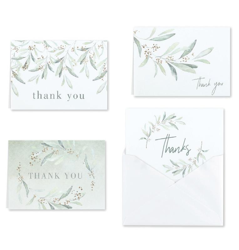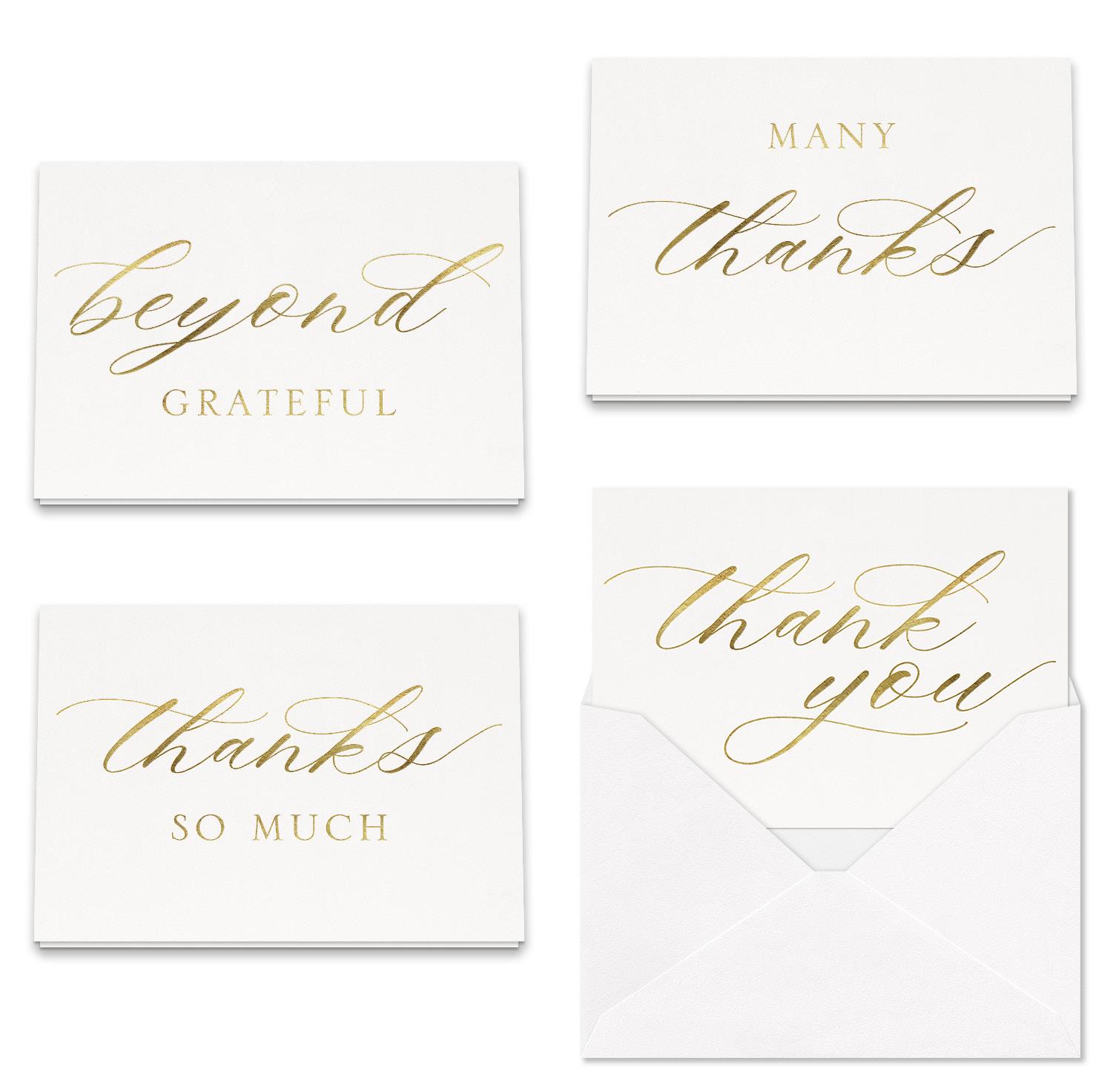 BLACK AND WHITE THANK YOU SET Digital. Package of 24 cards; 6 of each design with blank white envelopes.