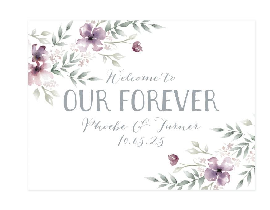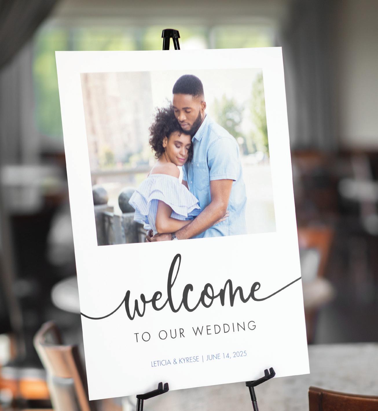 CLEAN AND MODERN PHOTO WELCOME SIGN Periwinkle ink and Futura Medium font shown. 18" x 24".