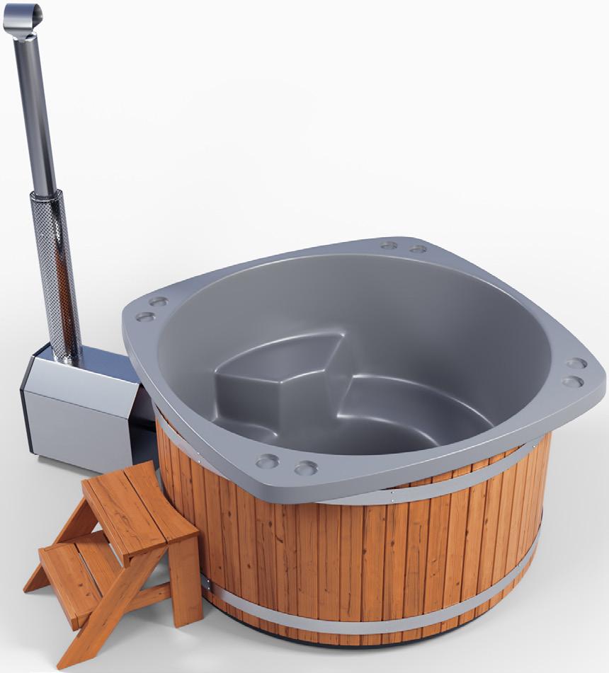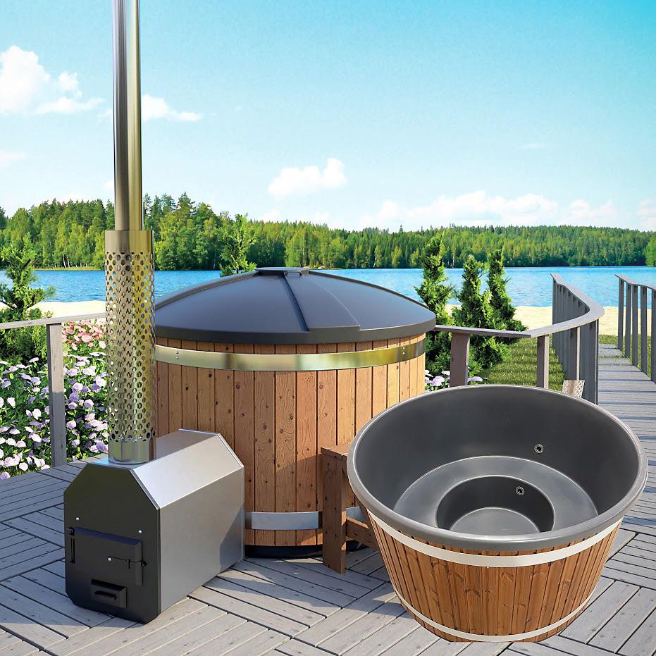 • kylpytynnyri, muovikansi, 35 kw kamina, savupiippu 2 m, sadehattu