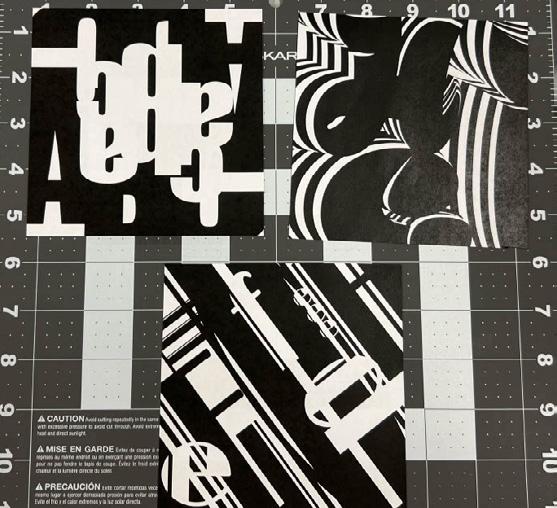 the four basic principles of design (composition, repetition, alignment, and proximity). All concepts were finalized in Adobe Illustrator, in which they were converted to PRESS PDF files with trim and 0.125” bleed marks. These images were then printed and cut out using an x-acto blade and a metal ruler.