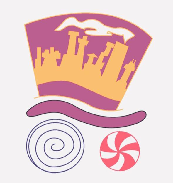 Willy Wonka is an innovative mastermind who founded a magical, yet mysterious chocolate factory. The final design is mainly composed of circular swirls to represent the nonsensical craziness of Wonka’s character, and his iconic top hat is the focal point of the logo. The hat’s brim is supposed to represent Wonka’s eyebrows, and the circular swirl and peppermint are meant to represent the eyes of the character. The color choices are meant to reflect the color palette of Wonka’s costume in the film. The typeface was inspired by Wonka’s candy bars and sweets’ packaging. The typeface is arranged in an arched-circular fashion, which frames the design to give it a more finished look.