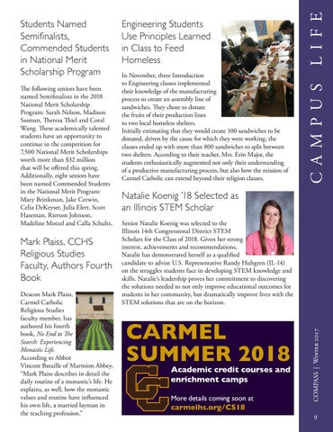 Mark Plaiss, CCHS Religious Studies Faculty, Authors Fourth Book Deacon Mark Plaiss, Carmel Catholic Religious Studies faculty member, has authored his fourth book, No End to The Search: Experiencing Monastic Life. According to Abbot Vincent Bataille of Marmion Abbey, “Mark Plaiss describes in detail the daily routine of a monastic’s life. He explains, as well, how the monastic values and routine have influenced his own life, a married layman in the teaching profession.”