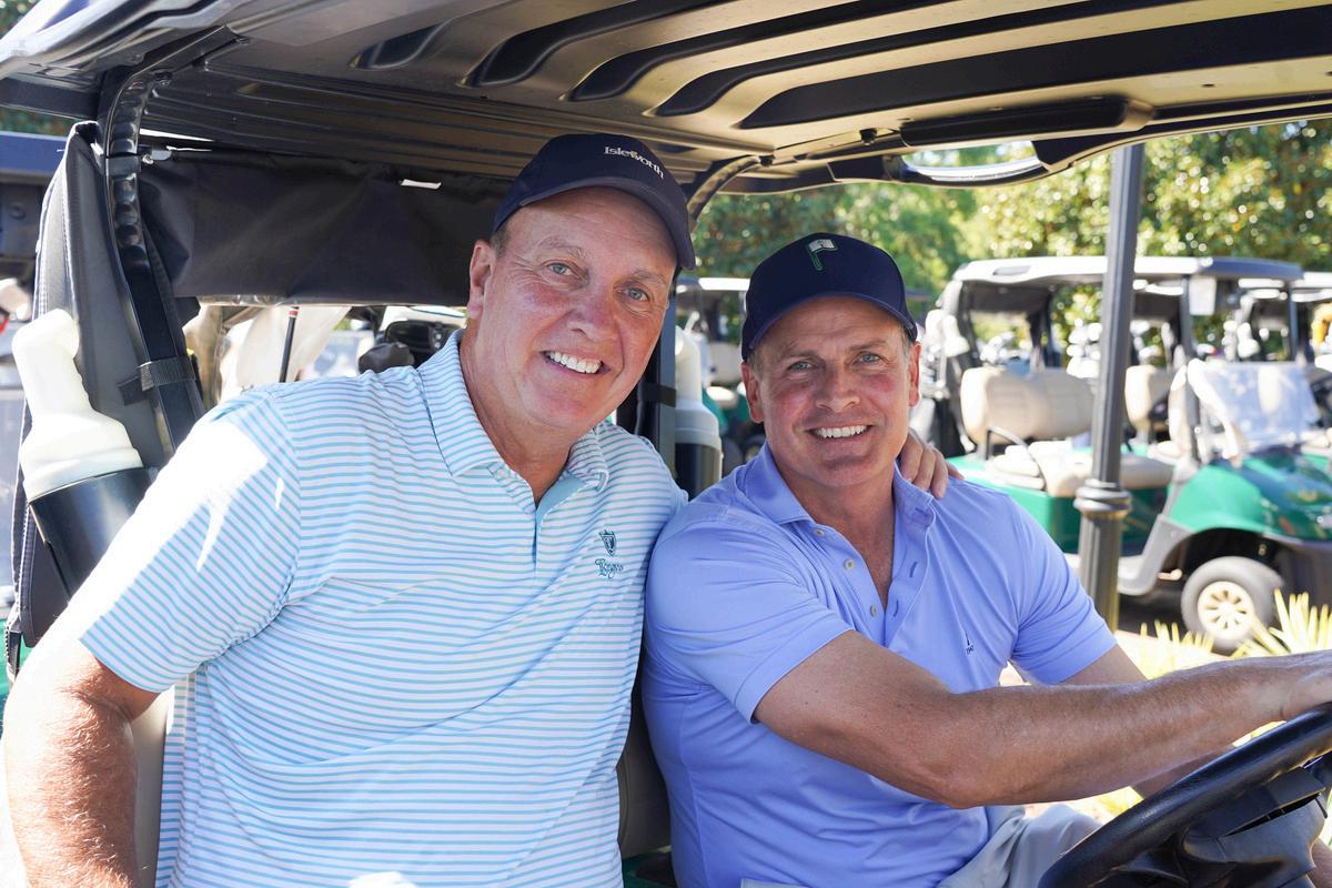 TopLeft:FrankRacanielloandGaryLaBrossestoppedforaphotobefore headingoutfortheOneDayMemberGuest.