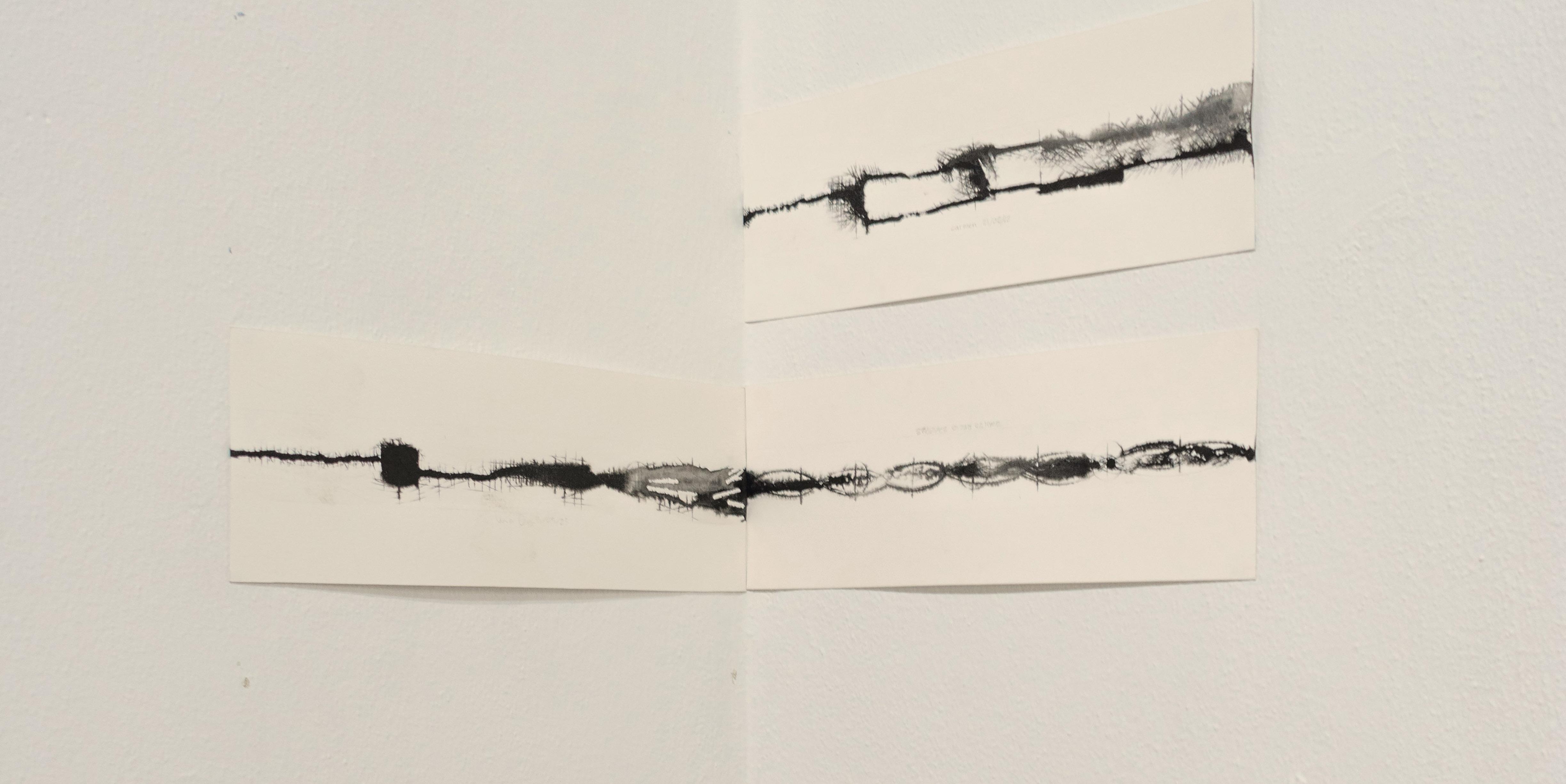 El proyecto artístico Leyendo en blanco: llenando líneas de vida (2023) propone una experiencia performativa y colaborativa de narración y lectura. Narrar la vida en voz alta a la vez que se genera una línea de tinta. La obra se habría desarrollado mediante un proceso experimental de co-creación, que querría explorar el carácter colaborativo e intersubjetivo de la comunicación a través del medio físico de la página. Para ejecutar la acción, el co-creador es invitado a codificar su vida en el papel trazando con bisturí una serie de grafismos en hueco. Después, mientras el soporte se coloca en vertical, el co-creador deja caer una gota de tinta desde lo alto del cauce vacío. La gota de tinta cae por la gravedad, llenando las arterias del papel y generando un dibujo espontáneo. Al mismo tiempo, cuenta en voz alta la historia de su vida. De este modo, queda el dibujo como registro del sonido de la voz del participante: huella de la travesía de la gota resbalando por el papel, así como huella de los ojos de los participantes siguiendo la caída de la tinta. Ejecutada durante mayo de 2023, se ha invitado a participar en la acción a un total de 34 personas. Como resultado, queda una serie de 34 piezas, firmadas y datadas.