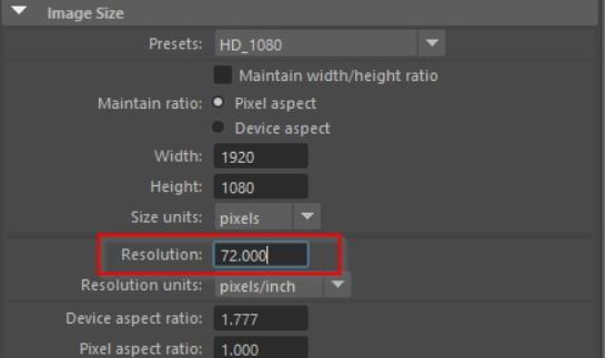 Una imagen se renderiza en Maya, 3ds Max o VRED mediante la configuración de renderización establecida en 300 PPP. Sin embargo, al cargar la salida de renderización en Photoshop, se muestra una resolución de 72 PPP.