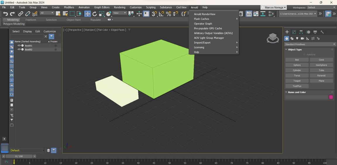 Parte superior del programa de 3ds Max, se encuentra un menú horizontal. En este menú, existen opciones como File, Edit, Tools, Group, Create, Modifiers, Animation, Grap Editors, Rendering, Civil View, Customize, Scripting, Interactive, Content, Substance, Arnold y Help. Aquí, es donde podemos personalizar nuestro programa.