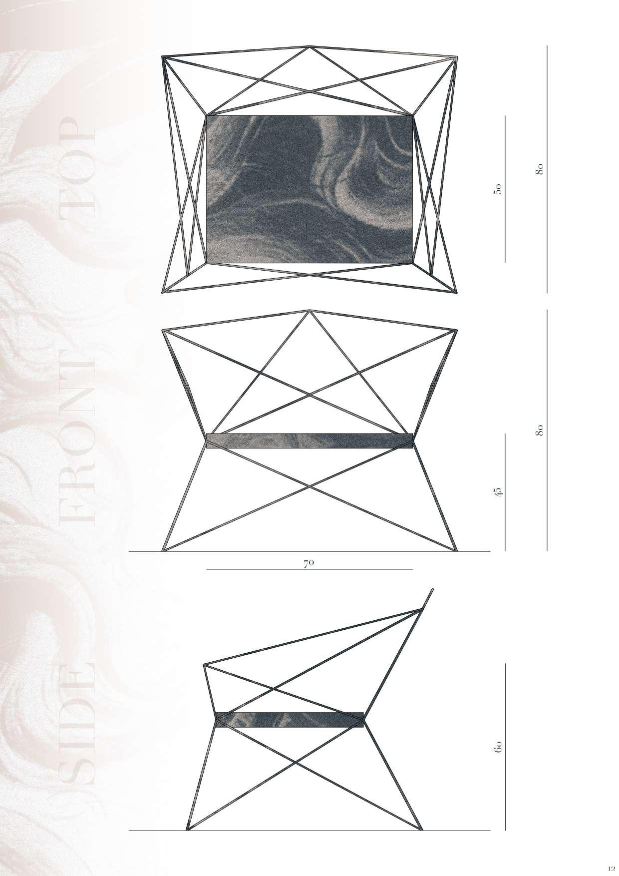 The structure in chromed lattice is a clear reference to Brunelleschi’s linear centric perspective.
