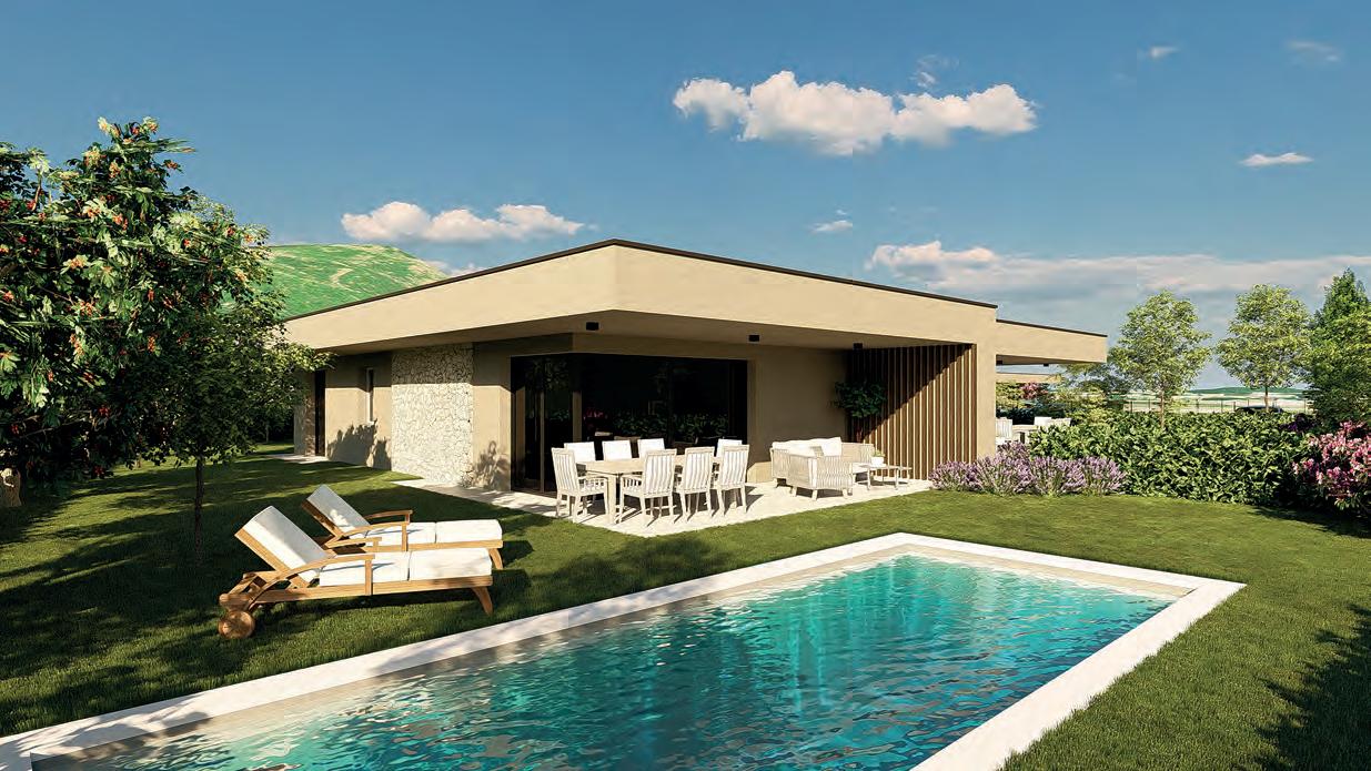 Rossar Dream Village is an exclusive real estate initiative located on the hilly side of the municipality of Costermano, on Lake Garda, in the Marciaga area, in an environment of great naturalistic value, immersed in a relaxing and bucolic climate. The evocative charm and the particular climate make Lake Garda the ideal place to rediscover your psychophysical balance and rediscover energy, beauty and inner harmony as well as being a unique opportunity for fun for the whole family. The settlement, completely immersed in a green oasis, is made up of 4 prestigious villas of large size, all equipped with independent entrance, swimming pool and private garden. The villas of Rossar Dream Village, built in energy class A+ and with an anti-seismic structure, include the most modern energy efficiency performances, reduction of environmental impact and improvement of comfort and quality of living. Each residential portion has a modern and refined design, equipped with photovoltaic panels, solar thermal system and latest generation technological systems, containing in their being the most innovative and high-performance technologies. Thermal insulation, integrated home automation and finishes made with quality materials, selected to guarantee 360° comfort and aesthetics while respecting the environment, make this residential complex a place where you can find the coveted peace and serenity.