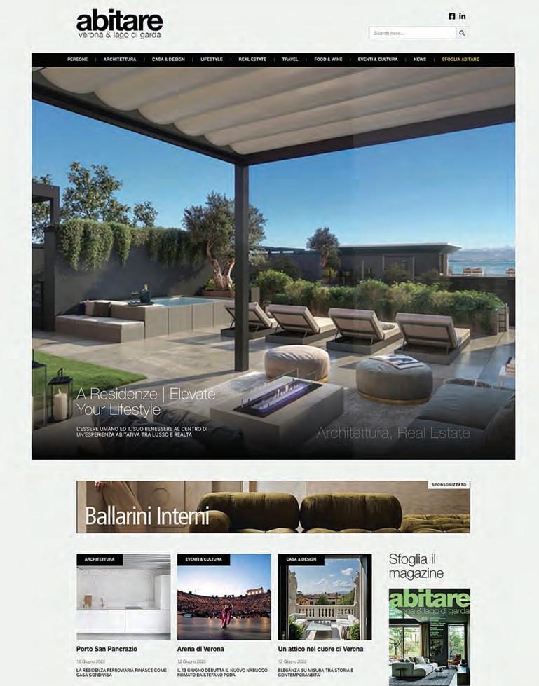 binomio sofisticato che vede protagonisti i grandi nomi della musica internazionale e del teatro. Ma non solo, in questo numero di Abitare vi portiamo a conoscere persone, imprenditori appassionati, come Flavio Zuliani, Barbara Ferrero, Stefano d’Onghia e Viviana dal Pozzo che hanno fatto della loro professione una visione, una mission, donne e uomini che hanno inseguito la propria ispirazione e realizzato i propri sogni.Come in ogni numero, anche in questo Abitare avrete i migliori consigli di interior, per prendere ispirazione e lasciarvi tentare ad arredi di design, frutto dell’eccellenza italiana, arricchendo, specialmente in questo periodo il vostro spazio outdoor. Allora non aspettate oltre, prendete la vostra bibita ghiacciata ed iniziate a sfogliare questo numero, per un estate all’insegna della bellezza.
