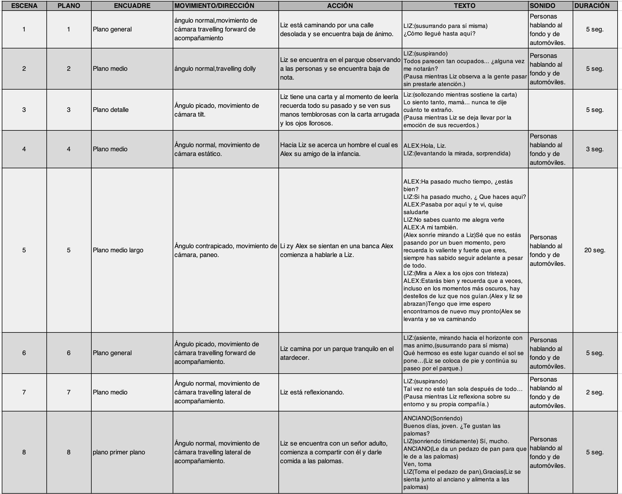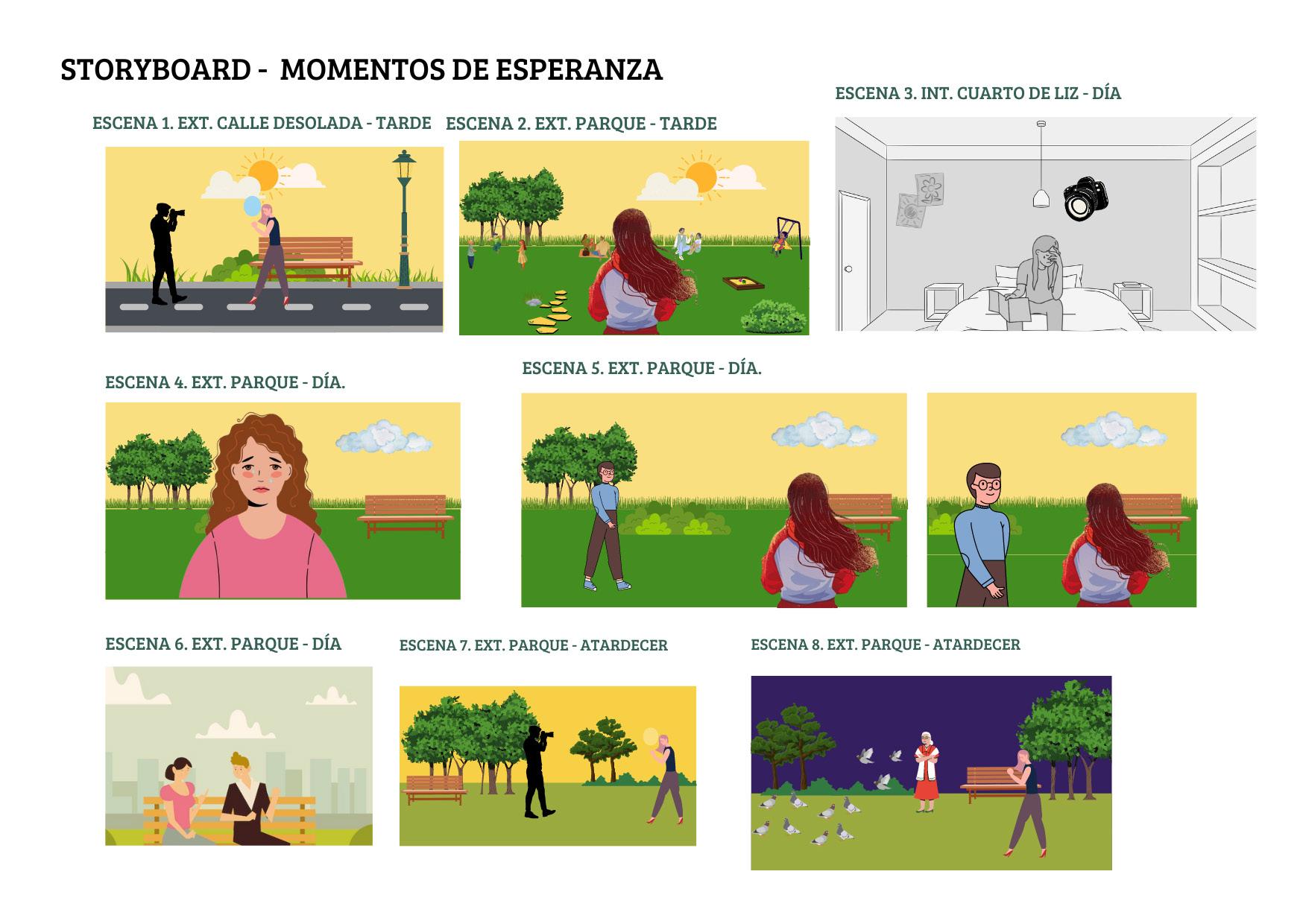 JUSTIFICACIÓN:”Momentos de Esperanza” se propone como un cortometraje que aborda temas universales y profundamente humanos, centrándose en la búsqueda de la esperanza en medio de la desesperación. En un mundo donde los desafíos y las adversidades pueden parecer abrumadores, creemos que contar historias que resaltan la capacidad del ser humano para encontrar la luz incluso en los momentos más oscuros es fundamental.En la sociedad actual, marcada por la incertidumbre, la división y la desconfianza, es esencial recordar que la esperanza es un poderoso motor que impulsa el cambio y la transformación personal. A través de la historia de Liz, una joven que ha perdido la fe en sí misma y en el mundo que la rodea, buscamos explorar cómo el encuentro fortuito con la empatía y la conexión puede desencadenar una cadena de eventos que llevan a la redención y la renovación. El tema de la esperanza es especialmente relevante en el contexto actual, donde muchas personas pueden sentirse atrapadas en ciclos de negatividad y desesperación. Queremos ofrecer una narrativa que inspire a la audiencia a mirar más allá de las dificultades presentes y a encontrar la fuerza interior para superar los obstáculos, recordando que siempre hay una luz al final del túnel. Además, creemos en el poder del cine como una herramienta para generar empatía y comprensión entre las personas. A través de la historia de Liz, esperamos crear un puente emocional que conecte a la audiencia con los desafíos y las luchas internas de los personajes, fomentando así una reflexión más profunda sobre nuestras propias vidas y relaciones.